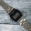 Наручные часы из прошлого вернулись в современной интерпретации. Надёжный корпус выполнен из полимерного пластика, стойко противостоящего ударам и повреждениям, для браслета с регулируемым креплением была выбрана нержавеющая сталь 316L. Электронная модель в серебристом цвете оснащена полезным функционалом: будильник, автоматический календарь, секундомер. Водостойкость 30 метров. Яркая подсветка экрана. Габариты: 36,3 x 38,6 x 9,6 мм.