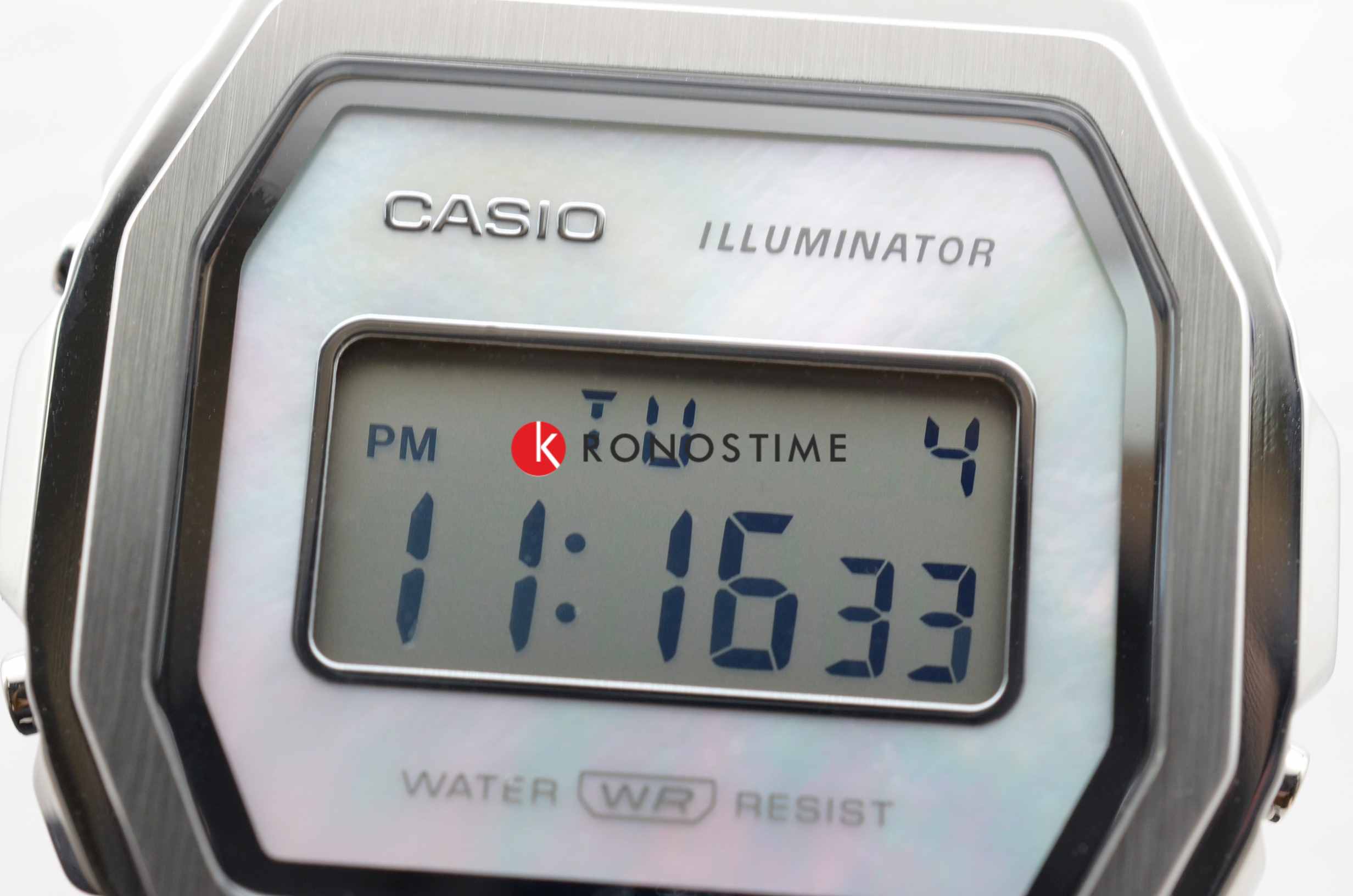Серебристый аксессуар с фирменным для Casio 8-угольным корпусом будет гармонично смотреться как с деловым пиджаком, так и с повседневной водолазкой. Оригинальности добавляет переливающийся цифровой дисплей. Ударопрочный корпусУдаропрочный корпусМеханизм заключён в корпус, выполненный из современных материалов, устойчивых к ударам, механическим повреждениям и падению с высоты: инновационный пластик, карбон, нержавеющая сталь, титан. и браслет с предохранительной застёжкой сделаны из нержавеющей стали 316L. Надёжное минеральное стекло. Срок работы батарейки - 3 года. Наличие будильника, секундомера, календаря. Светодиодная подсветкаСветодиодная подсветкаСветодиодная или LED-подсветка обеспечивает появление яркого холодного свечения за счёт LED-элементов - маленьких лампочек. Они потребляют минимальное количество энергии, чаще всего можно встретить 1 светодиод, в нижней части циферблата. дисплея. Габариты: 38 x 39,6 x 7,3 мм.