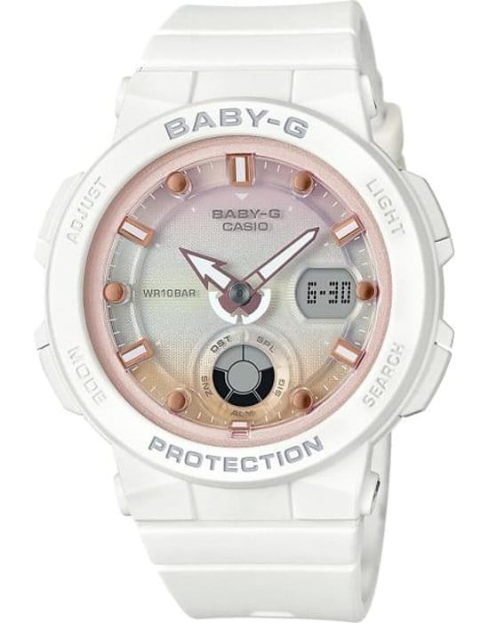 Женские японские часы Casio Baby-G BGA-250-7A2 из коллекции Baby-G станут ярким элементом вашего образа, модель напоминает о летних вечеринках на пляжном курорте.