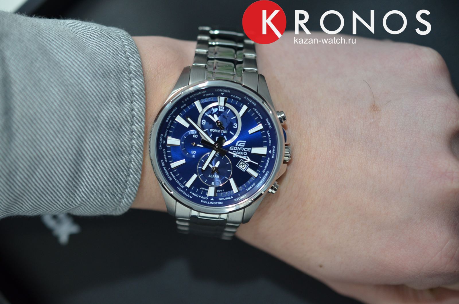 Мужские наручные часы Casio Edifice надежные и практичные. Кварцевый японский механизм Miyota. Отображение времени в различных часовых поясах с обозначением 29 основных городов в этих зонах и универсальное время. (в режиме «текущего времени» отображается индикатором на «12 часах»). Будильник (устанавливается и отображается индикатором на «6 часах»). Стрелки и индексы с светонакопительным нанесением. Корпус и браслет выполнены из высококачественной стали с антикоррозийными свойствами. Минеральное стекло устойчиво к появлению царапин. Циферблат - рельефный, стилизованный под картографическое изображение земного шара. Водонепроницаемость (10 Бар).