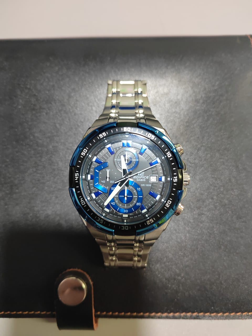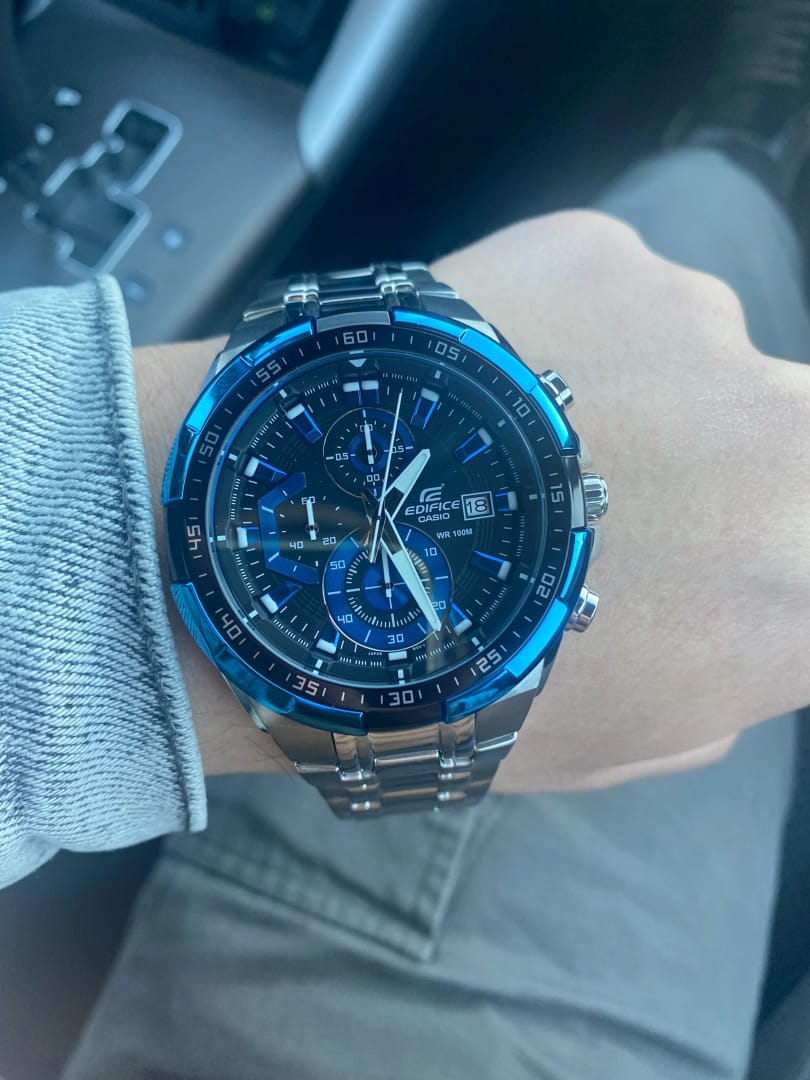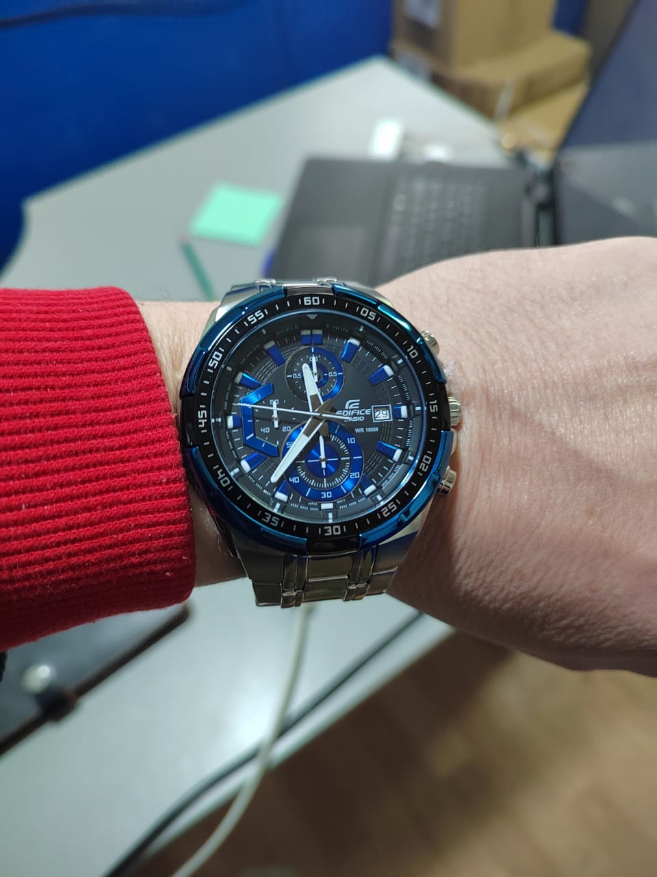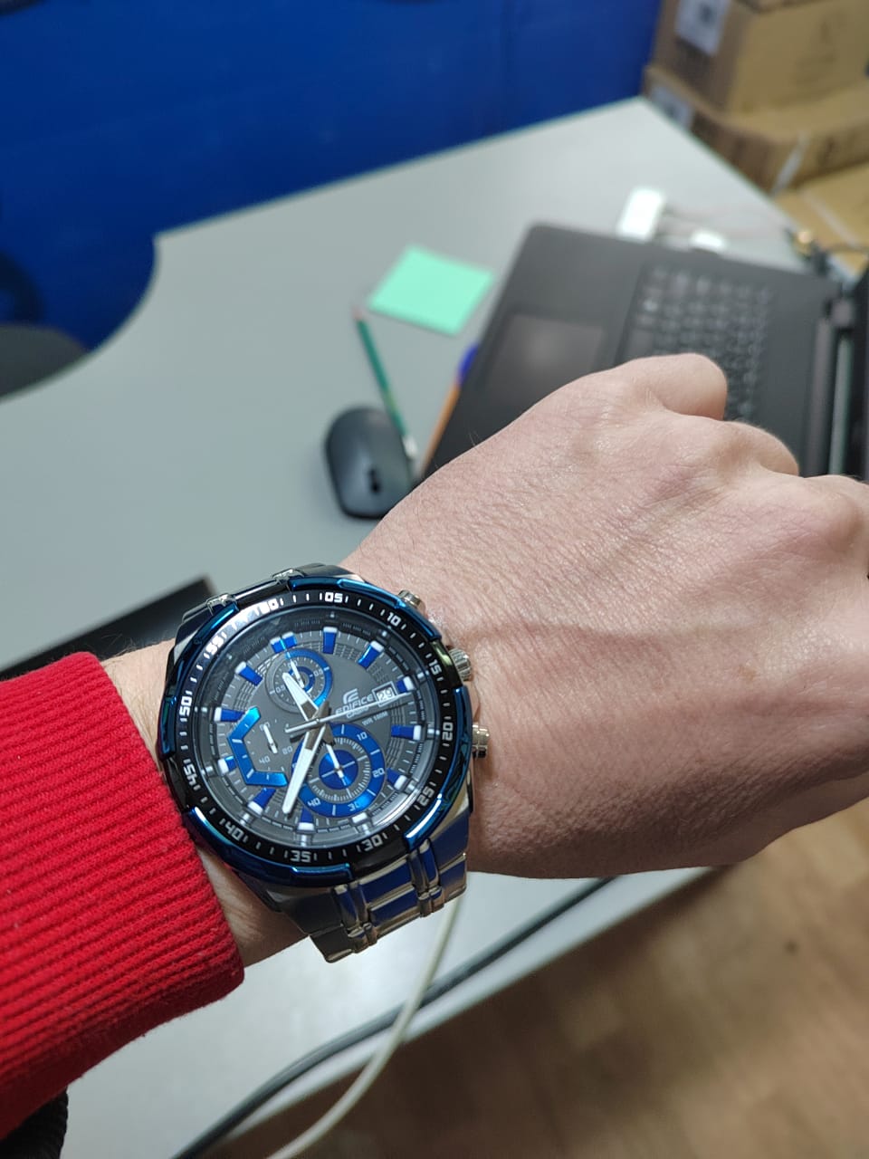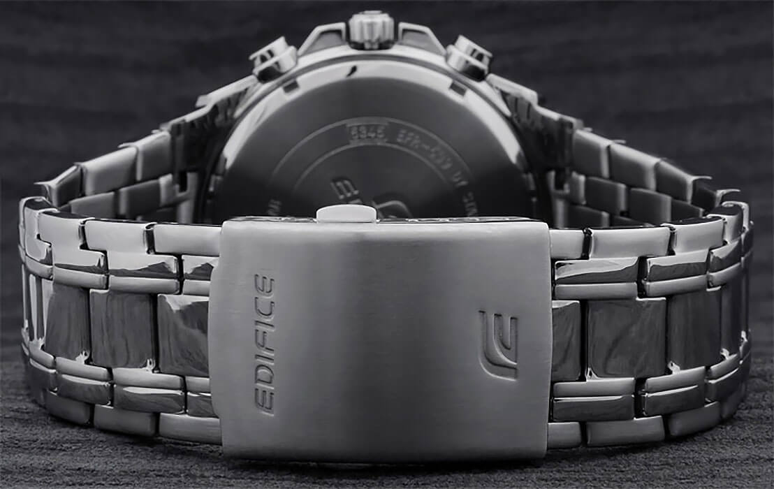 Японские мужские часы из коллекции Edifice идеально смотрятся на широком запястье, стильный спортивный хронографХронографФункция позволяет измерять отрезки времени с особой точностью: часы, минуты, секунды. Верным признаком хронографа является наличие на циферблате 3 дополнительных окошек-счётчиков. позволит всегда находиться в центре внимания.