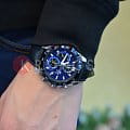 Стильные японские наручные кварцевые мужские часы. Круглый корпус часов выполнен из стали с антикоррозийными свойствами. Синий циферблат, с карбоновым эффектом, с контрастными элементами дизайна. Водонепроницаемость 10 ATM. Минеральное стекло, устойчивое к появлению царапин. Ремешок из натуральной кожи синего цвета. Часы оснащены функцией хронографа.