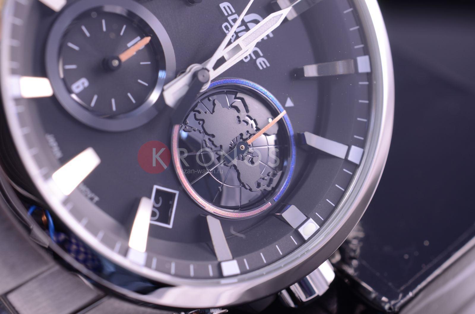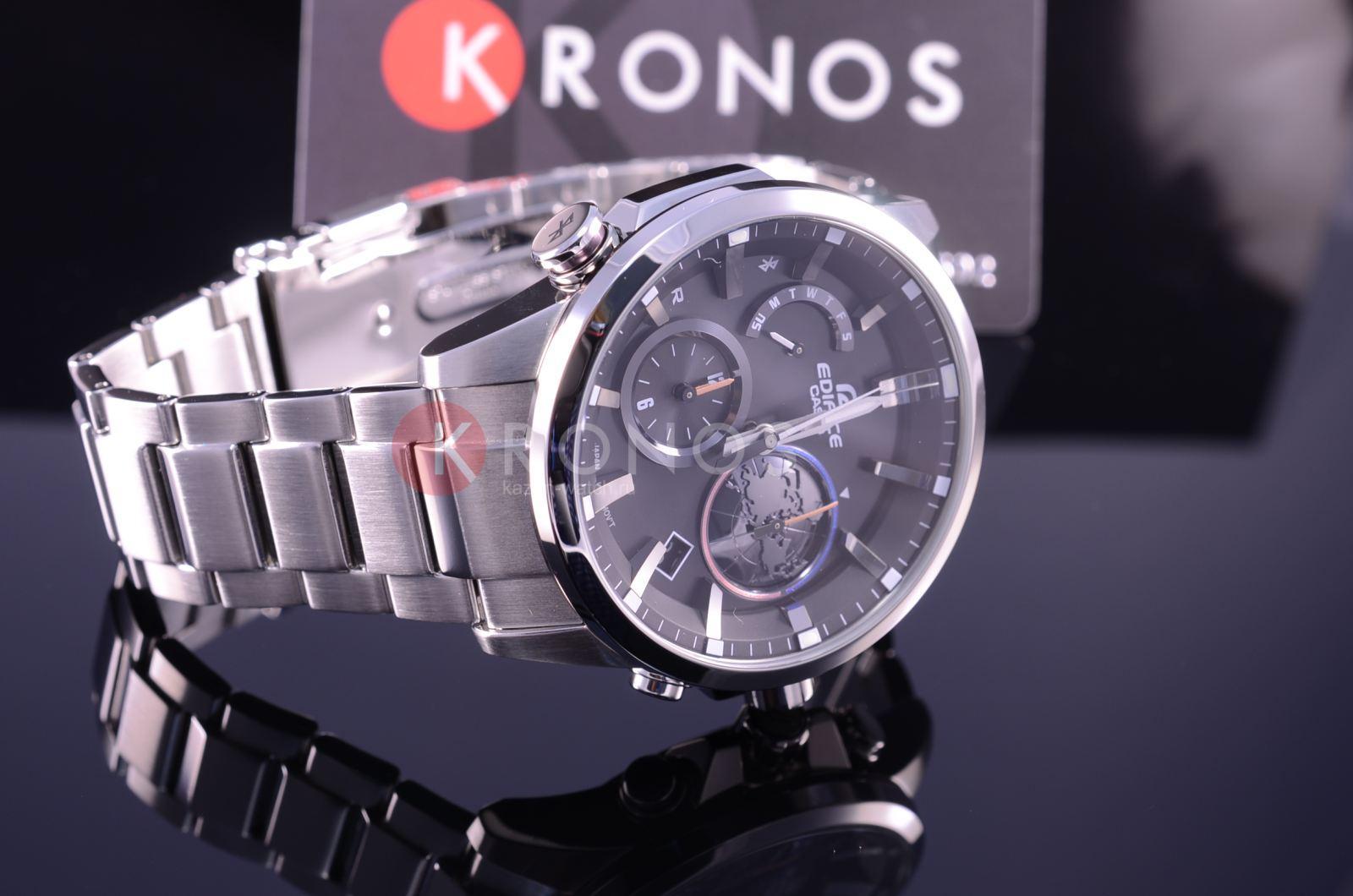 Высокотехнологичный аксессуар в чёрно-серебристой расцветке имеет лаконичное исполнение с оригинальными счётчиками на циферблате. Наручные часы Edifice Smartphone Link оснащены Bluetooth 4.0BluetoothСовременная технология, позволяющая синхронизировать часы с телефоном и переносить данные. Часы с Bluetooth расширяют возможности вашего смартфона и делают его использование ещё более удобным., позволяющей корректировать текущее время и копировать настройки мирового времениМировое время Полезное часовое усложнение, отображающее время в основных городах и известных областях по всему миру, оно связано с часовыми поясами, удобно для путешественников и бизнесменов. с помощью интернет-сервиса. Часы не нуждаются в подзаводе благодаря технологии питания от солнечного света . Без подзарядки модель может проработать до 5 месяцев. Люминесцентная подсветка NeobriteПодсветка NeobriteИспользование светонакопительных составов на основе сульфида цинка или алюмината стронция, яркий свет можно наблюдать на протяжении 6-10 часов после «зарядки» часов около источника света.. Авиарежим. Минеральное стекло. Ударопрочный корпусУдаропрочный корпусМеханизм заключён в корпус, выполненный из современных материалов, устойчивых к ударам, механическим повреждениям и падению с высоты: инновационный пластик, карбон, нержавеющая сталь, титан. и браслет из нержавеющей стали 316L. Водостойкость 100 метров. Завинчивающаяся заводная головка. Функция поиска телефона, приём уведомлений о новых письмах электронной посты, секундомер, автоматический календарь, расчёт средней скорости пройденного маршрута. Габариты: 47,3 x 51,9 x 13,3 мм.