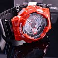 Casio GA-110CB-1A стильные мужские японские наручные часы. Корпус и браслет выполнены из полимерного пластика, вес часов всего 72 грамма. Строгость черного браслета разбавляется ярко-красными корпусом часов. Минеральное стекло, устойчивое к появлению царапин. Часы GA-110CB-1A снабжены множеством дополнительных функций - секундомер, таймер обратного отсчета, календарь, полностью автоматическая подсветка с автоматической регулируемой автоматизацией. Ежечасный сигнал, повтор сигнала будильника, мировое время. Водонепроницаемость часов до 200 метров (возможны занятия дайвингом). Ударопрочные и магнитоустойчивые.