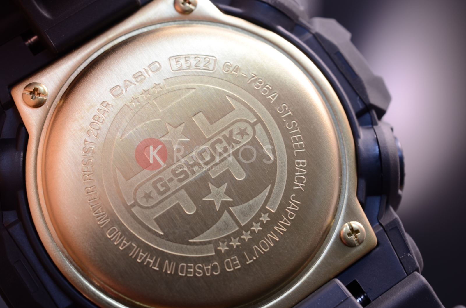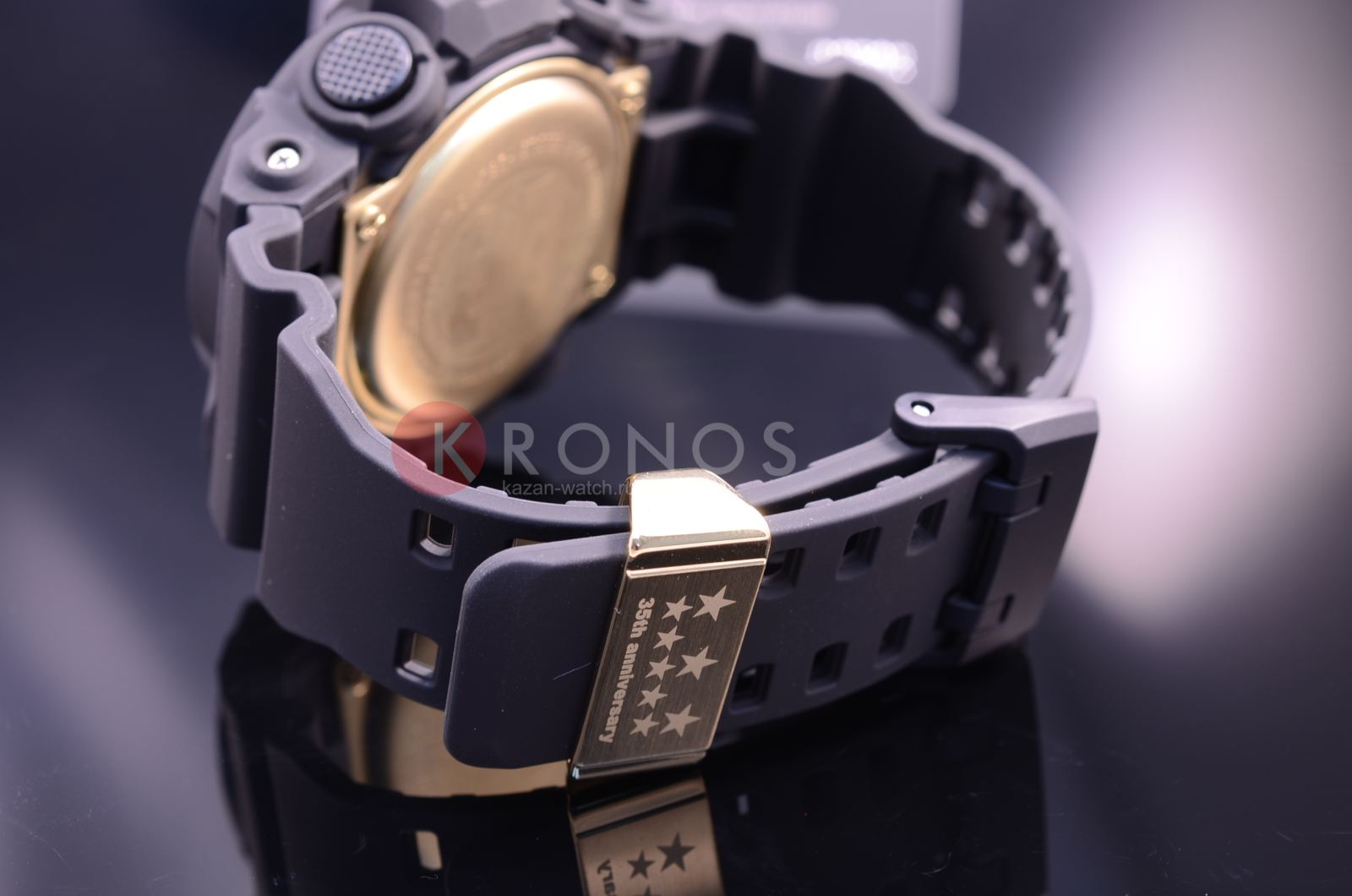 Лимитированная серия. Задняя крышка всех часов в коллекции украшена гравировкой с логотипом 35-й годовщины G-SHOCK, разработанным известным художником-графиком Эриком Хейзем (Eric Haze). На застежке размещена звездная эмблема, символизирующая цифру 35. Для каждых часов была подготовлена коллекционная коробка. Противоударный корпус защищает механизм от ударов и вибрации. Защищены от магнитных полей. Циферблат подсвечивается светодиодом, функция автоподсветки освещает циферблат при повороте часов к лицу. Мировое время – 48 городов (29 часовых поясов), всемирное координированное время (UTC). Автоматический переход на зимнее и летнее время, возможность включения/отключения данной функции. 12-ти и 24-х часовой формат времени. Секундомер с точностью показаний 1/1000с и временем измерения 100ч. Измерение скорости. Сплит-хронограф. Таймер обратного отсчета от 1мин до 24ч с автоповтором.