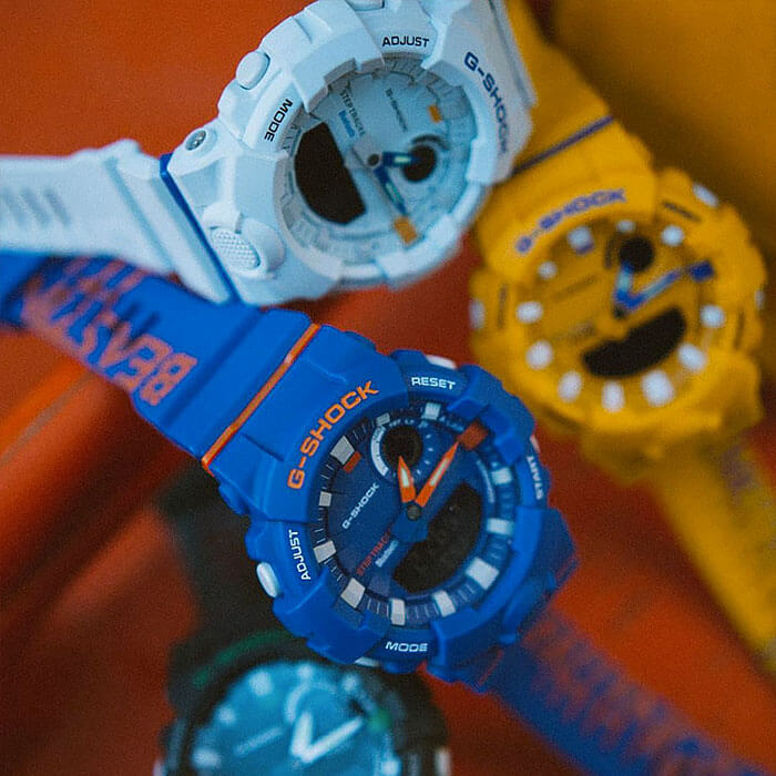 Японские мужские часы GBA-800DG-2AER из коллекции G-Shock станут ключевой особенностью вашего образа благодаря запоминающемуся внешнему виду и ярко-синему цвету с оранжевыми деталями.