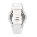 Наручные часы в белоснежном исполнении идеально смотрятся на запястье, они станут грамотным дополнением к повседневному или спортивному стилю одежды. Они оснащены высокоточным шагомером с измерением количества шагов от 0 до 999999, в мобильном приложении G-Shock Connected Phone можно хранить данные физической активности и устанавливать ежедневную норму, это позволяет осуществить технология BluetoothBluetoothСовременная технология, позволяющая синхронизировать часы с телефоном и переносить данные. Часы с Bluetooth расширяют возможности вашего смартфона и делают его использование ещё более удобным.. Японский кварцевый калибр. Эксплуатационный срок батарейки составляет 3 года. Надёжный противоударный корпусУдаропрочный корпусМеханизм заключён в корпус, выполненный из современных материалов, устойчивых к ударам, механическим повреждениям и падению с высоты: инновационный пластик, карбон, нержавеющая сталь, титан. из полимерного пластика. Минеральное стекло устойчиво к царапинам. Двойная подсветка: стрелки с люминесцентным покрытиемЛюминесцентное покрытиеПозволяет считывать показания времени в темноте. Производители наносят на стрелки, часовые индексы, безель или поверхность циферблата светонакопительный состав, дающий холодное свечение., циферблат подсвечивается светодиодомСветодиодная подсветкаСветодиодная или LED-подсветка обеспечивает появление яркого холодного свечения за счёт LED-элементов - маленьких лампочек. Они потребляют минимальное количество энергии, чаще всего можно встретить 1 светодиод, в нижней части циферблата.. Водостойкость до 20 бар. Мировое времяМировое время Полезное часовое усложнение, отображающее время в основных городах и известных областях по всему миру, оно связано с часовыми поясами, удобно для путешественников и бизнесменов. , таймер, автоматический календарь до 2099 года, будильник, хронографХронографФункция позволяет измерять отрезки времени с особой точностью: часы, минуты, секунды. Верным признаком хронографа является наличие на циферблате 3 дополнительных окошек-счётчиков., секундомер. Габариты: 54,1 x 48,6 x 15,5 мм.
