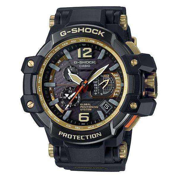 Перед вами флагманская лимитированная модель из серии G-SHOCK GPW в "золотом" исполнении. Черный безель из ионизированной стали дополнен деталями циферблата и корпуса, исполненными в золотом цвете. И конечно не стоит забывать, что это первые в мире часы с GPS- и радио-синхронизацией времени с атомными часами на разных континентах.