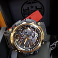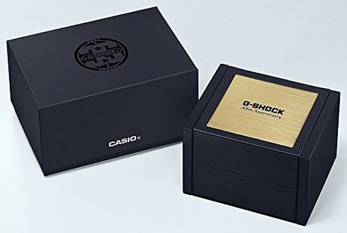 Всего к своему 35-летию G-SHOCK выпустили несколько юбилейных моделей из различных серий, в том числе и серию Gold Tornado в черно-золотом дизайне с узнаваемой красной внутренней стороной ремешка