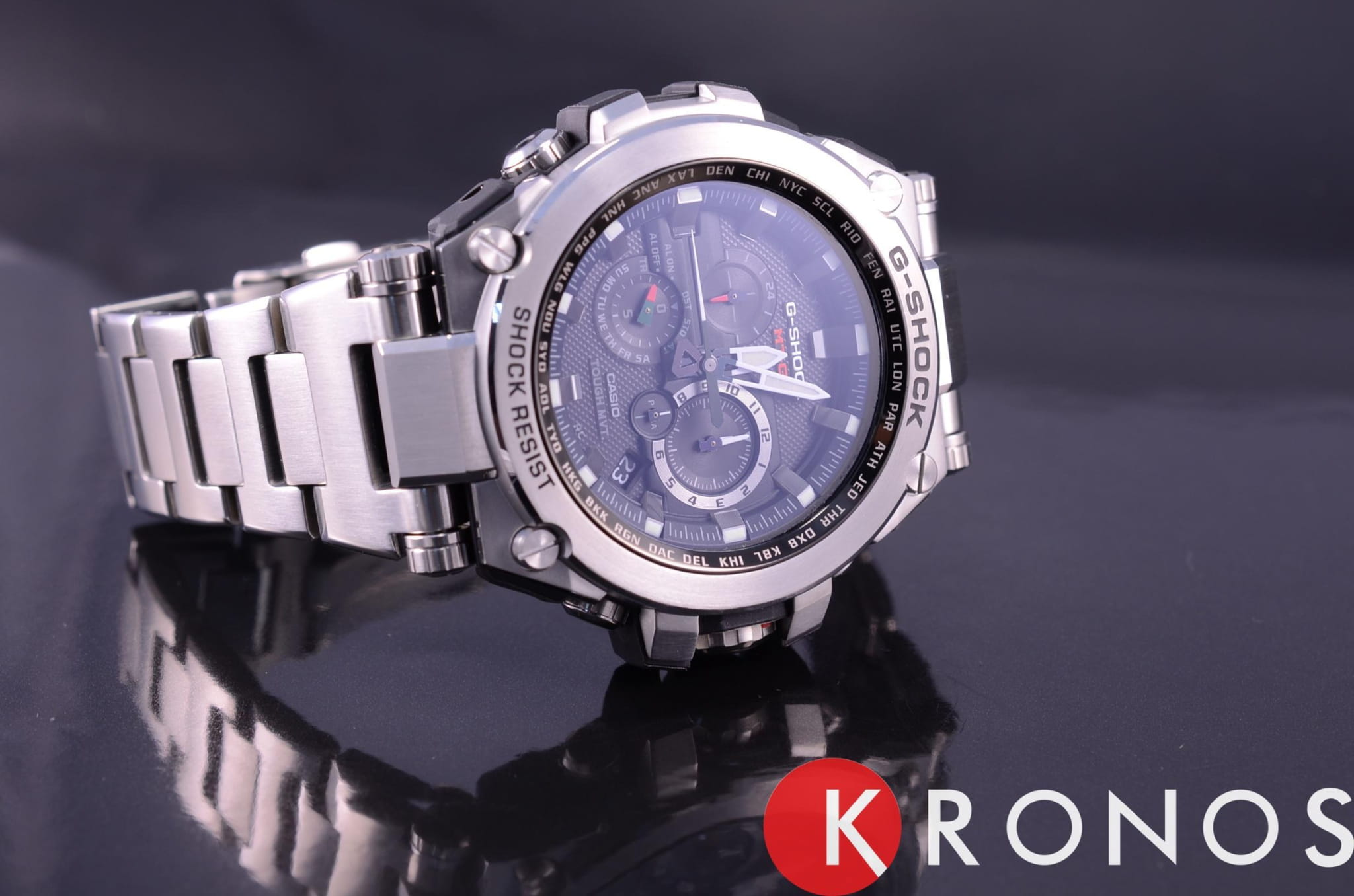 Часы полностью защищены от падений, влияния центробежной силы или перегрузок, оснащены водозащитой. Точность времени достигается автоматической синхронизацией по 6-канальному радио-сигналу с атомными часами на разных континентах.