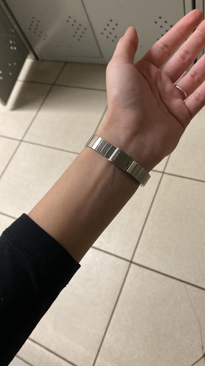 Часы имеют функцию таймера и будильника. Устойчива к мелким брызгам. Любые контакты с большим количеством воды следует избегать. Благодаря серебристому цвету часы сочетаются со всеми моими обычными аксессуарами. На руке они смотрятся действительно хорошо, их можно комбинировать с браслетами и кольцами.