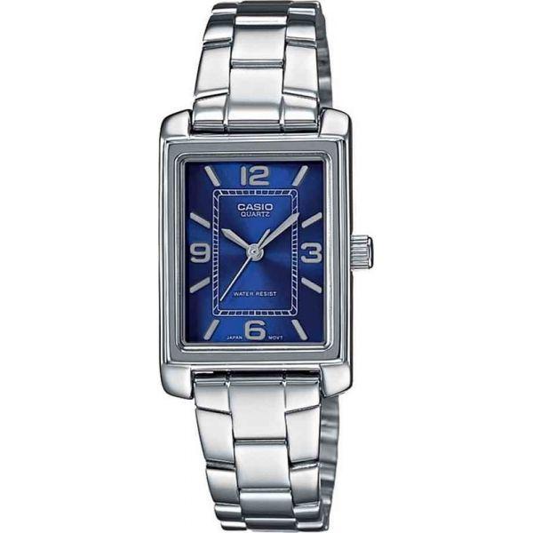 Женские наручные часы выполненные из латуни, в прямоугольном корпусе, секундная стрелка центральная на синем циферблате.