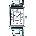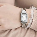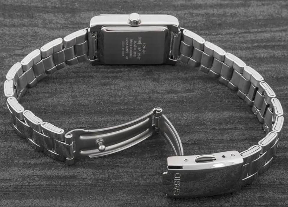 Крупный циферблат наручных часов имеет квадратную форму. На нем расположены арабские цифры серебристого цвета, которые удачно вписываются в цветовую гамму остальных деталей аксессуара. Серебристый браслет с приятным, мягким свечением выполнен из прочной, нержавеющей стали. Корпус надежно защищен минеральным, устойчивым к царапинам стеклом. Ремень защищен от незапланированного расстегивания, так как имеет предохранительную защелку. Часы обладают водонепроницаемостью в 30WR.
