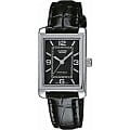 Женские наручные часы выполненные из латуни, в прямоугольном корпусе, секундная стрелка центральная на черном циферблате.
