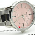 Серебристый блеск нержавеющей стали 316L гармонирует с нежно-розовым циферблатом, это позволяет подчеркнуть романтичную натуру владелицы. Кварцевый механизм с точностью хода +/- 20 секунд в месяц. Стрелки с люминесцентной подсветкойЛюминесцентное покрытиеПозволяет считывать показания времени в темноте. Производители наносят на стрелки, часовые индексы, безель или поверхность циферблата светонакопительный состав, дающий холодное свечение.. Минеральное стекло устойчиво к появлению царапин. Водостойкость 50 метров. Габариты: 30 x 35,5 x 7,5 мм.