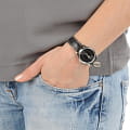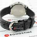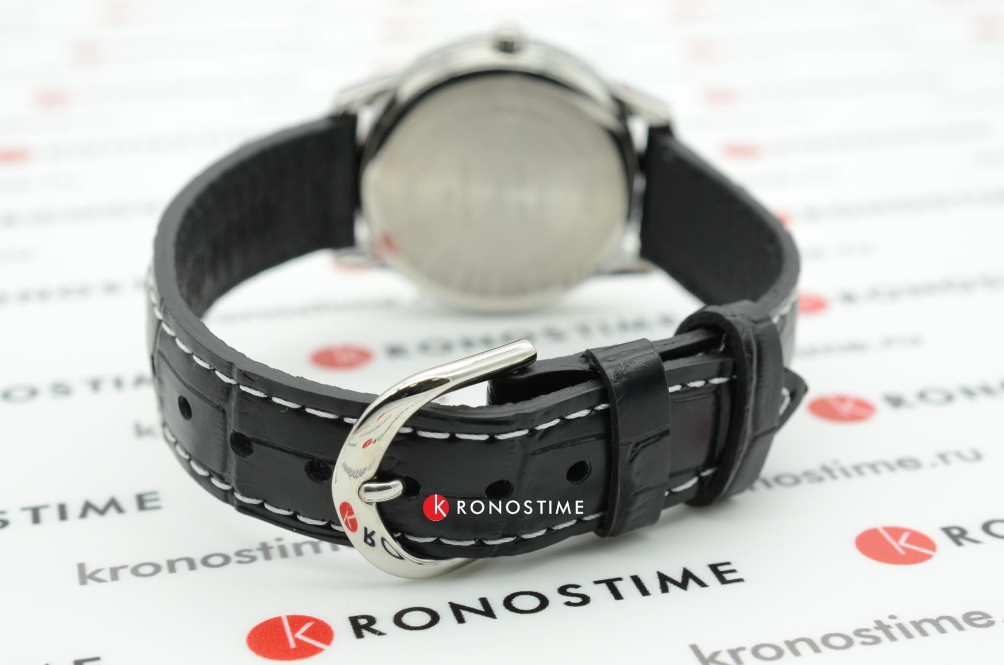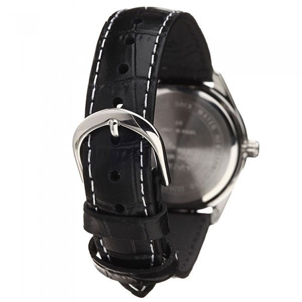 Серебристый блеск нержавеющей стали 316L гармонирует с чёрным циферблатом, это позволяет подчеркнуть стремление владелицы к лаконичным и универсальным вещам. Кварцевый механизм с точностью хода +/- 20 секунд в месяц. Стрелки с люминесцентной подсветкойЛюминесцентное покрытиеПозволяет считывать показания времени в темноте. Производители наносят на стрелки, часовые индексы, безель или поверхность циферблата светонакопительный состав, дающий холодное свечение.. Минеральное стекло устойчиво к появлению царапин. Ремешок из натуральной кожи. Водостойкость 50 метров. Габариты: 30 x 35,5 x 7,5 мм.