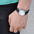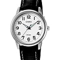 Наручные часы от Casio имеют скромный, и одновременно элегантный дизайн, что делает их универсальными и актуальными долгие годы. Серебристый, аккуратный корпус сделан из гипоаллергенной латуни. Черный браслет из натуральной, высококачественной кожи представляет собой прочную и удобную деталь. На белом циферблате расположены отчетливые временные отметки в виде арабских цифр. Тип механизма - кварцевый. Срок службы батарейки составляет 3 года. Водонепроницаемость равна 5 Барам.