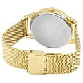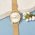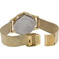 Стильный дизайн аксессуара выдержан в золотистом цвете. На браслет миланского плетения и корпус, сделанные из стали, нанесено защитное IP-покрытиеIP-покрытиеМетод ионного напыления. Демонстрирует повышенную устойчивость к истиранию, окислению и химическим веществам. Под воздействием высокого давления и температуры около 1500°C молекулы металла надёжно соединяются с частицами корпуса часов.. На круглом, черном циферблате расположены аккуратные временные отметки в виде штрихов. Защита часов от негативных воздействий обеспечивается минеральным стеклом. Благодаря кварцевому типу механизма отсутствует необходимость каждый раз заводить часы. Вес аксессуара составляет 60 грамм.
