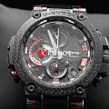 Чёрный циферблат с красными акцентами отличается необычной ромбовидной текстурой, внушительный карбоновый безель имеет шахматный узор. Casio обновили ударопрочный корпусУдаропрочный корпусМеханизм заключён в корпус, выполненный из современных материалов, устойчивых к ударам, механическим повреждениям и падению с высоты: инновационный пластик, карбон, нержавеющая сталь, титан., по сравнению с предыдущими моделями MTG он получился компактнее и тоньше (14,4 мм). Корпус выполнен из нержавеющей стали и пластика, усиленного карбоном - Carbon Core GuardCarbon Core Guard Новейшая структура корпуса, разработанная Casio. Полиуретановая пластина дополнительно усилена карбоновыми вставками, что придаёт специальную защиту от механических повреждений. Карбон отличается лёгкостью и прочностью.. Дополнительно внедрили вставки из материала alphaGEL, силиконовая прослойка обеспечивает возникновение амортизирующего эффекта. Чёрное IP-покрытиеIP-покрытиеМетод ионного напыления. Демонстрирует повышенную устойчивость к истиранию, окислению и химическим веществам. Под воздействием высокого давления и температуры около 1500°C молекулы металла надёжно соединяются с частицами корпуса часов.. Технология . Подсветка экрана. Стекло из сапфира. Функции: Bluetooth SmartBluetoothСовременная технология, позволяющая синхронизировать часы с телефоном и переносить данные. Часы с Bluetooth расширяют возможности вашего смартфона и делают его использование ещё более удобным., поиск телефона, будильник, приём радиосигнала, хронографХронографФункция позволяет измерять отрезки времени с особой точностью: часы, минуты, секунды. Верным признаком хронографа является наличие на циферблате 3 дополнительных окошек-счётчиков., календарь, мировое времяМировое время Полезное часовое усложнение, отображающее время в основных городах и известных областях по всему миру, оно связано с часовыми поясами, удобно для путешественников и бизнесменов. . Габариты: 51,7 x 55,8 x 14,4 мм.