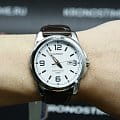 Белый циферблат с серебристыми часовыми метками и стрелками позволяет использовать часы в сочетании с одеждой любого цвета. Корпус из гипоаллергенной латуни отличается лёгкостью, коричневый ремешок из натуральной кожи надёжно обхватывает запястье. Срок службы батарейки для питания кварцевого механизма - 3 года. Люминесцентная подсветкаЛюминесцентное покрытиеПозволяет считывать показания времени в темноте. Производители наносят на стрелки, часовые индексы, безель или поверхность циферблата светонакопительный состав, дающий холодное свечение.. Сохранение водонепроницаемости при давлении до 5 бар. Минеральное стекло. Габариты: 44,9 x 50 x 9,4 мм.