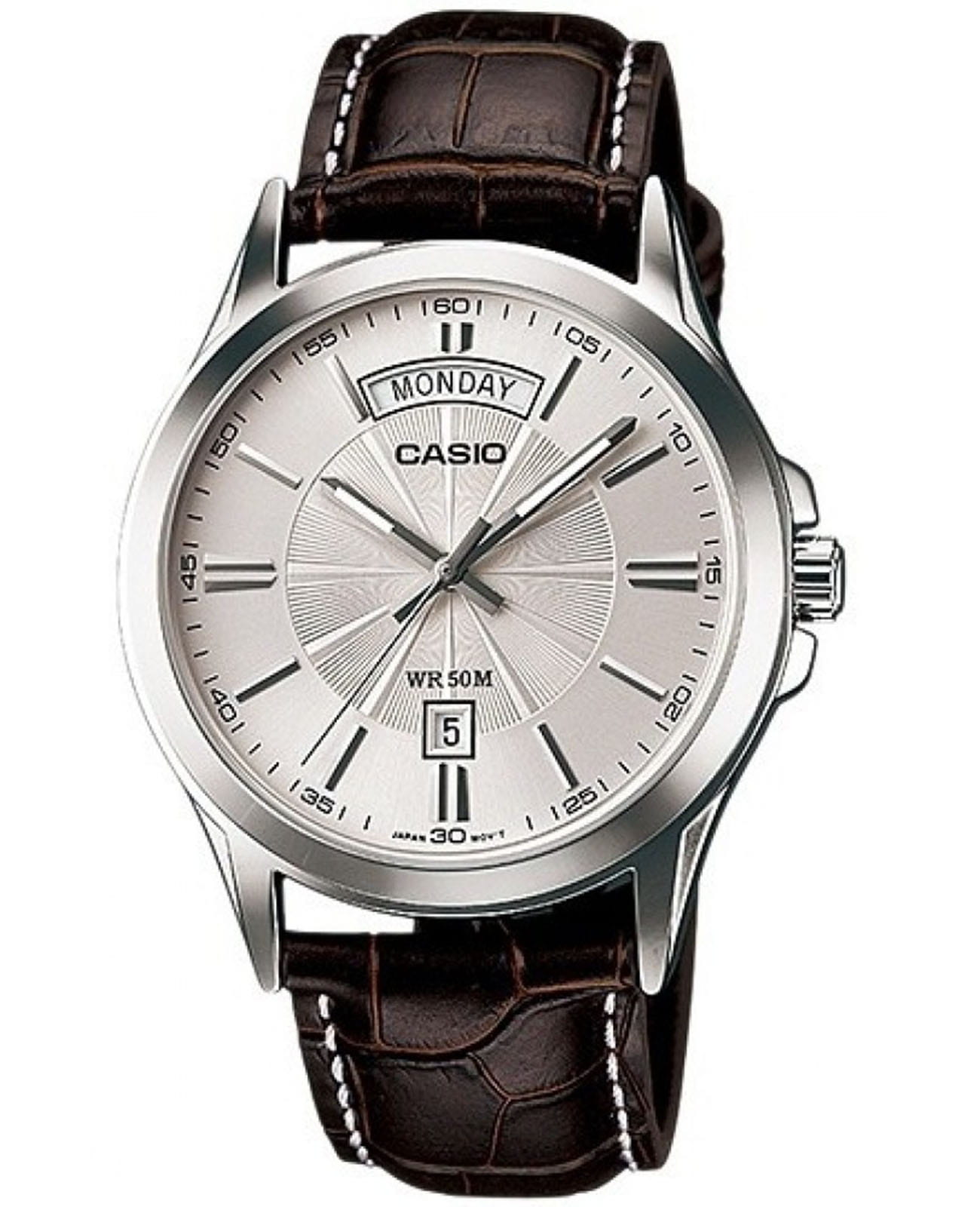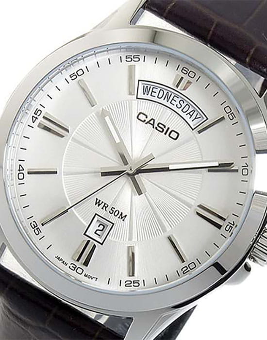 Мужские японские наручные часы из линейки Casio MTP Collection умело сочетают в себе винтажные элементы и спортивный стиль. Минеральное стеклоМинеральное стеклоМинеральное стекло представляет собой искусственно выращенный минерал кварца. Такое стекло отличается особой устойчивостью к повреждениям и царапинам. Уступает по некоторым качествам сапфировому стеклу. устойчивое к мелким механическим повреждениям. Высокотехнологичный аксессуар обладает строгим стилем и традиционной формой циферблата. Сдержанные, классические цвета и плавные линии позволяют носить часы, не снимая, их универсальность идеально подходит для делового костюма, повседневной одежды или образа для вечернего выхода. Для корпуса использована нержавеющая сталь 316L, за счёт чего достигается повышенная устойчивость к повреждениям и ударам. Надежные часы которые прослужат много лет. Модель комплектуется надёжным механизмом, точность хода которого составляет +/- 20 сек/мес. Кожаный ремешок на стандартной застёжке. Окошки дня недели и даты находятся в положении 12 часов и 6 часов соответственно. Заводная головка с защитой.