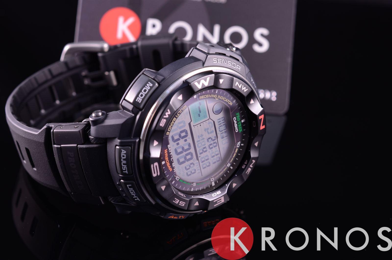 Часы, созданные для любителей активного отдыха, сочетают в себе самые продвинутые технические характеристики в привлекательном внешнем виде. Питание от солнечной энергии Tough Solar - солнечные батарейки большой мощности, индикатор заряда батареи. Функция автоматического сохранения энергии. Модуль часов рассчитан на работу при низких температурах до -10°С/14°F. Технология Triple Sensor позволяет точно и легко определять сторону света, температуру и атмосферное давление. Термометр от -10° до +60°С с точностью 0,1°C. Барометр - измерение атмосферного давления от 260 до 1100 гПа (от 195 до 825 мм рт. ст.). Встроенный цифровой компас. Диапазон измерения от 0° до 359° с точностью 1°. Высотомер - встроенный датчик барометрического давления с возможностью вывода результатов в единицах высоты над уровнем моря (от -700 до 10000 метров). Секундомер, таймер. Функция перемещения стрелок. Функция отключения/включения звука. Будильник (5 установок). Минеральное стекло устойчиво к появлению царапин. Водонепроницаемость (10 Бар).