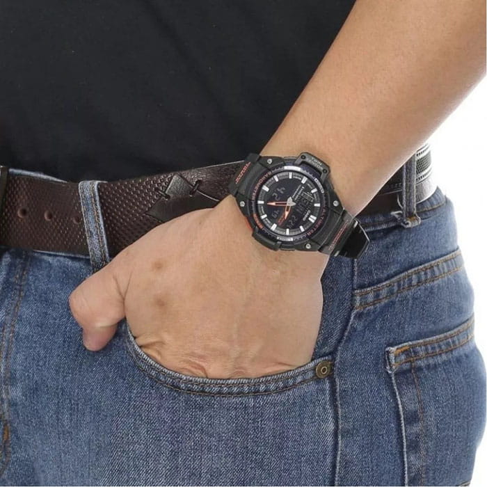 Спортивные мужские многофункциональные часы с аналогово-цифровым циферблатом черного цвета. Пластиковый корпус с алюминиевым безелем крепится на руке ремешком, изготовленным из пластика в черном цвете. Часы Casio SGW-450H-2B оснащены электролюминесцентной подсветкой на весь экран, высотомером, барометром, термометром и такими базовыми функциями, как секундомер, таймер и будильник. Корпус - Пластиковый; Стекло - Минеральное; Водозащита - 100 м. (WR 100); Материал ремешка - Пластиковый; Цвет ремешка - Черный; Цвет циферблата - Lcd.