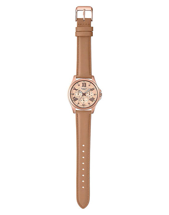 Брендовый аксессуар с отдельными мини-счётчиками выполнен в классическом стиле, крупные римские цифры создают винтажное настроение. Лаконичный циферблат декорирован стразами Swarovski, придающие вашему образу элемент роскоши. Высокоточный кварцевый механизм работает от батарейки, устраняя необходимость завода. Аккумулятор рассчитан на 3 года безупречной работы. Стильно смотрится коричневый ремешок из натуральной кожи. Люминесцентное покрытиеЛюминесцентное покрытиеПозволяет считывать показания времени в темноте. Производители наносят на стрелки, часовые индексы, безель или поверхность циферблата светонакопительный состав, дающий холодное свечение. стрелок. IP-покрытиеIP-покрытиеМетод ионного напыления. Демонстрирует повышенную устойчивость к истиранию, окислению и химическим веществам. Под воздействием высокого давления и температуры около 1500°C молекулы металла надёжно соединяются с частицами корпуса часов. корпуса с розоватым отливом. Минеральное стекло. Функция календаря. Габариты: 39,3 x 44,5 x 8,6 мм.