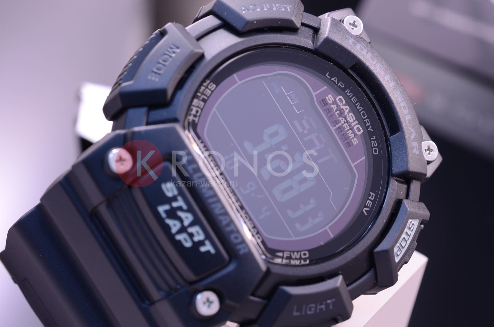 Спортивные японские часы на солнечной батареи.  Функция автоматического сохранения энергии. Время работы аккумулятора без подзарядки - 11 месяцев, при включенной функции сохранения энергии - 38 месяцев. Секундомер с точностью показаний 1/100с и временем измерения 100ч. Сплит-хронограф. Память на 120 этапов. Номер и лучшее время этапа. Два таймера обратного отсчета времени от 5с до 100мин с устанавливаемым количеством повторов от 1 до 10. Мировое время. 12-ти и 24-х часовой формат времени. Функция включения/отключения звука.