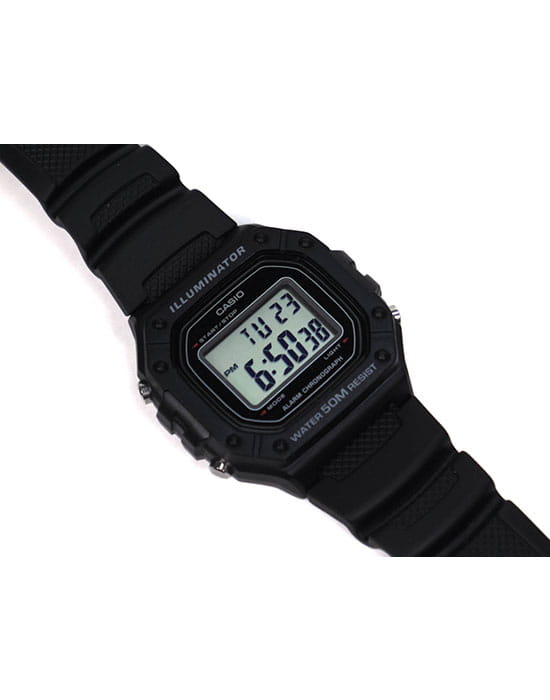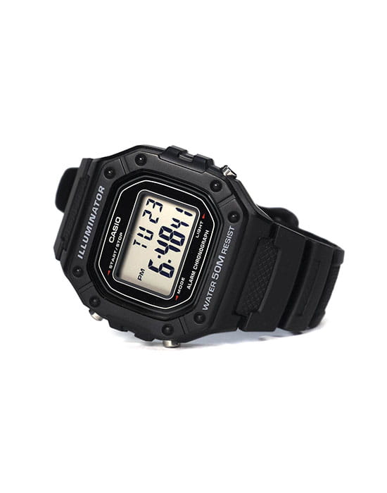 Спортивные японские мужские часы-хронографХронографФункция позволяет измерять отрезки времени с особой точностью: часы, минуты, секунды. Верным признаком хронографа является наличие на циферблате 3 дополнительных окошек-счётчиков. Casio Collection W-218H-1A, кварцевый механизм с высокой точностью, органическое стекло. Корпус часов изготовлен из пластика. Светодиодная подсветкаСветодиодная подсветкаСветодиодная или LED-подсветка обеспечивает появление яркого холодного свечения за счёт LED-элементов - маленьких лампочек. Они потребляют минимальное количество энергии, чаще всего можно встретить 1 светодиод, в нижней части циферблата. освещает весь циферблат. Цвет подсветки: оранжевый. 12-ти и 24-х часовой формат времени. СекундомерСекундомерСекундоме́р — прибор, способный измерять интервалы времени с точностью до долей секунды. с точностью показаний 1/100с и временем измерения 1ч. Сплит-хронографСплит-хронографИспользуется для измерения продолжительности нескольких временных отрезков, начинающихся одновременно, а заканчивающихся в разное время.. БудильникБудильникБуди́льник — часы, в заданный момент времени подающие звуковой, световой и/или в редких случаях другой сигнал., ежечасный сигнал. Класс водозащиты: 50 метров, позволит защитить корпус от случайных брызг или капель дождя. Ремешок из полимерного материала на стандартной застежке.