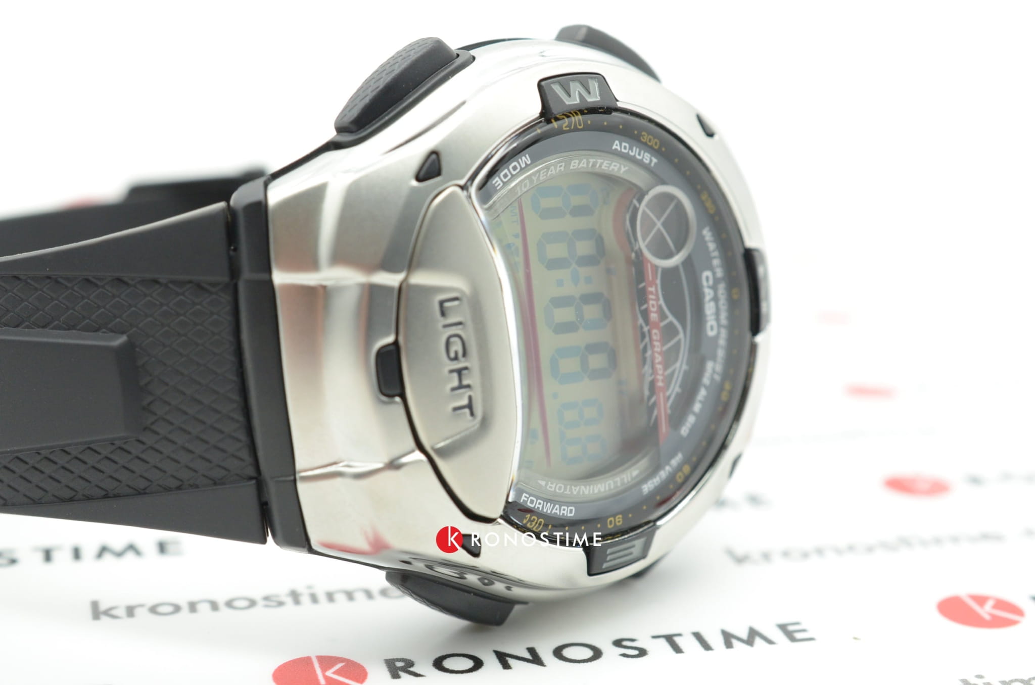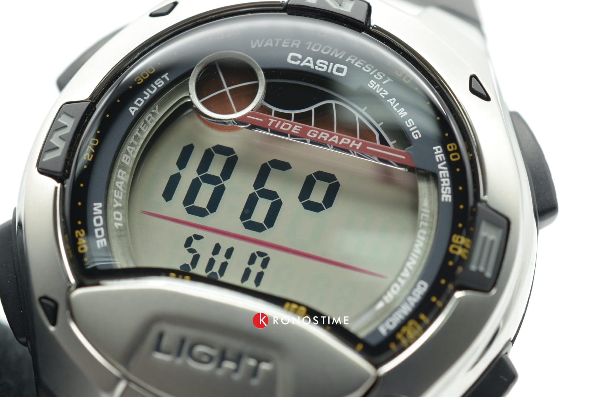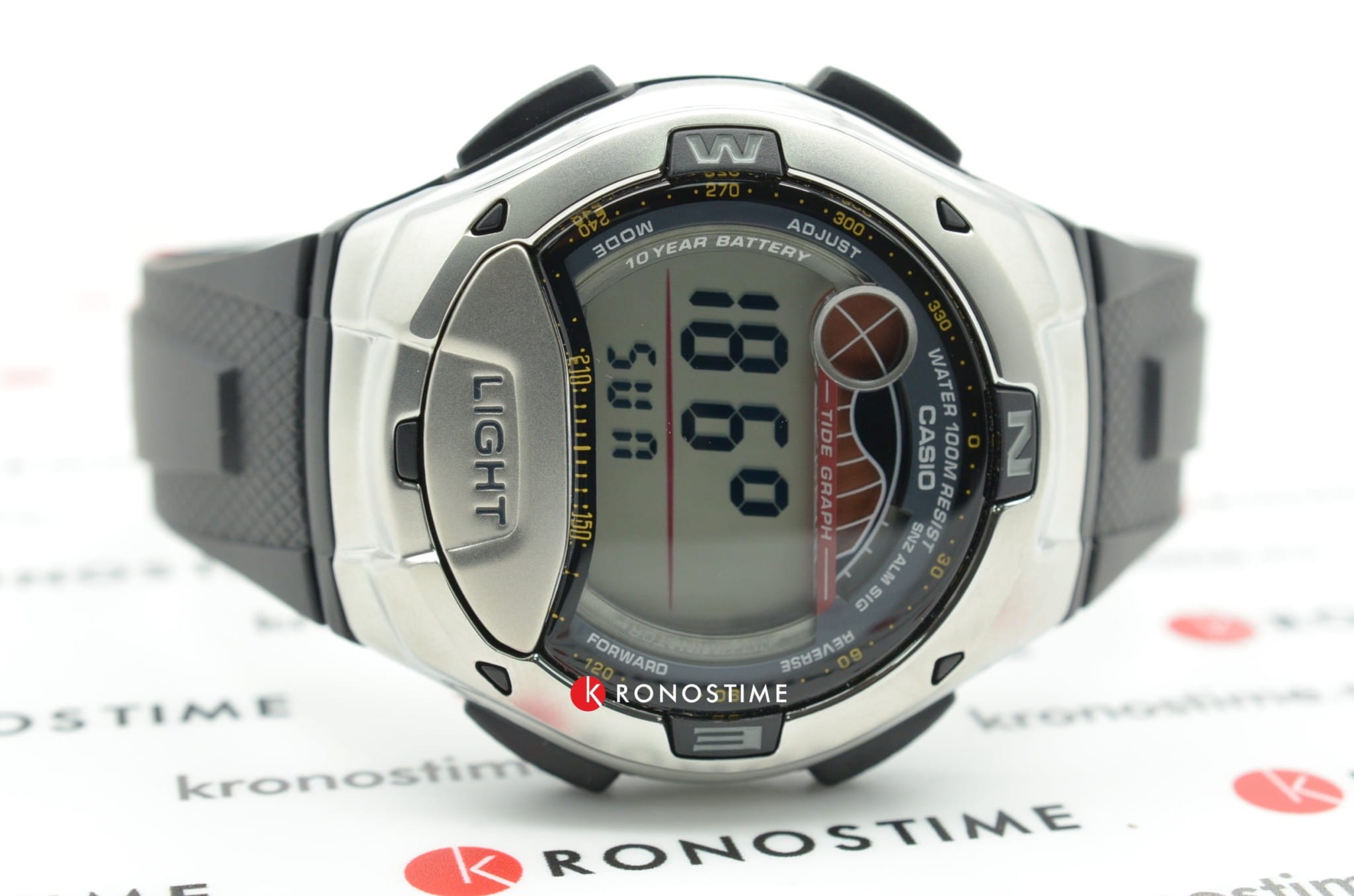 Данная модель от Casio идеально подойдет для любителей активного отдыха. На прочном корпусе имеются аккуратные отметки сторон света. На экране отображаются фазы луны. Есть датчик приливов и отливов. Вставлен вращающийся безельБезельВнешний ободок, закрепляющий стекло. В спортивных часах так называется поворотное кольцо с делениями на циферблате, выполняет роль таймера – замеряет отрезки времени на шкале. Неподвижный безель – элемент декора. Однонаправленно вращающийся безель на дайверских часах позволяет фиксировать моменты погружения и выныривания на поверхность.. Долговечная батарейка служит 10 лет.