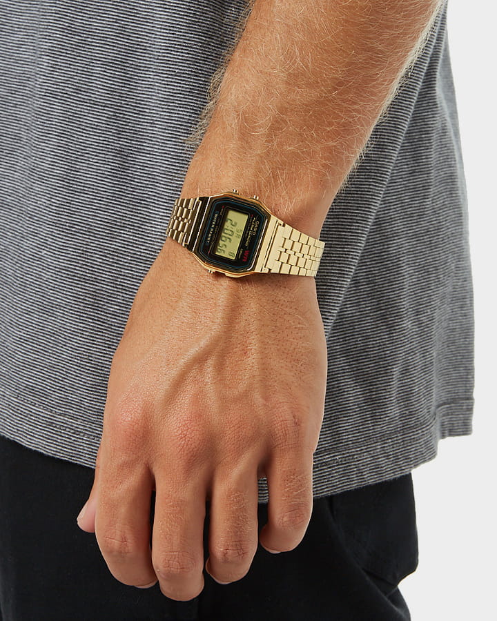 Модель A159WGEA-1DF из коллекции Vintage объединяет элегантный ретро-дизайн с современными функциями. Корпус выполнен из пластика с золотым PVD-покрытиемPVDУльтратонкое покрытие наносится в технике вакуумного напыления, сочетает в себе нитрид титана особой прочности со слоем золота или оксида хрома. Несёт в себе декоративную или защитную функцию., а браслет из нержавеющей стали обеспечивает стильный вид и долговечность.