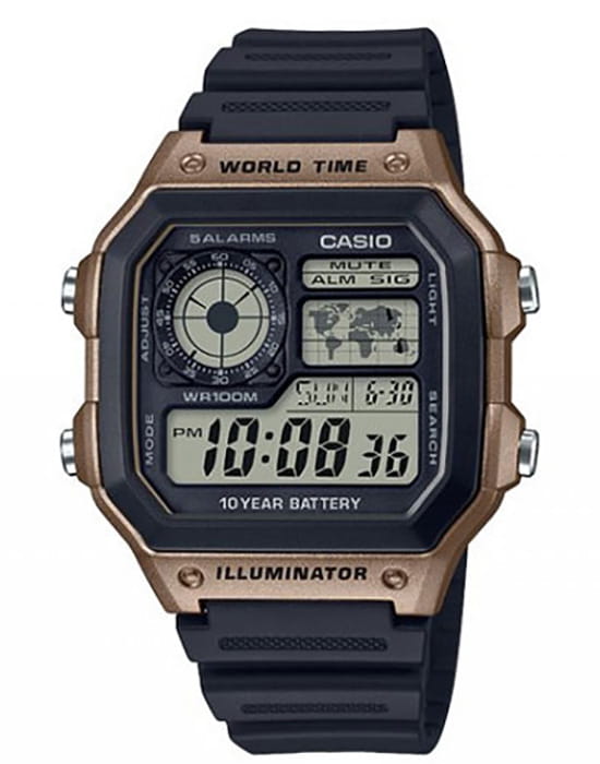 Японские мужские часы AE-1200WH-5AVEF из коллекции Illuminator выполнены в спортивном стиле, модель с оригинальным дизайном станет яркой деталью образа.