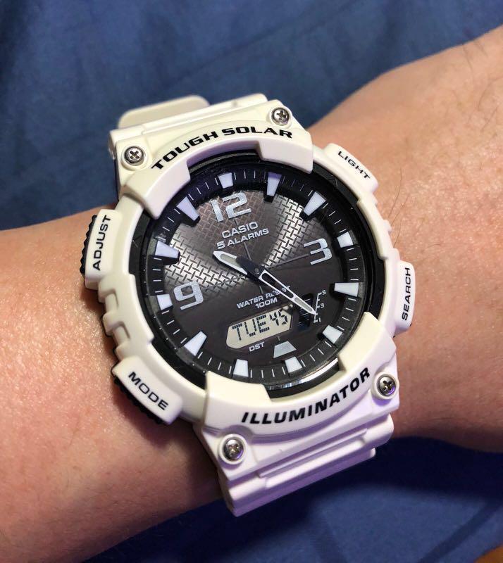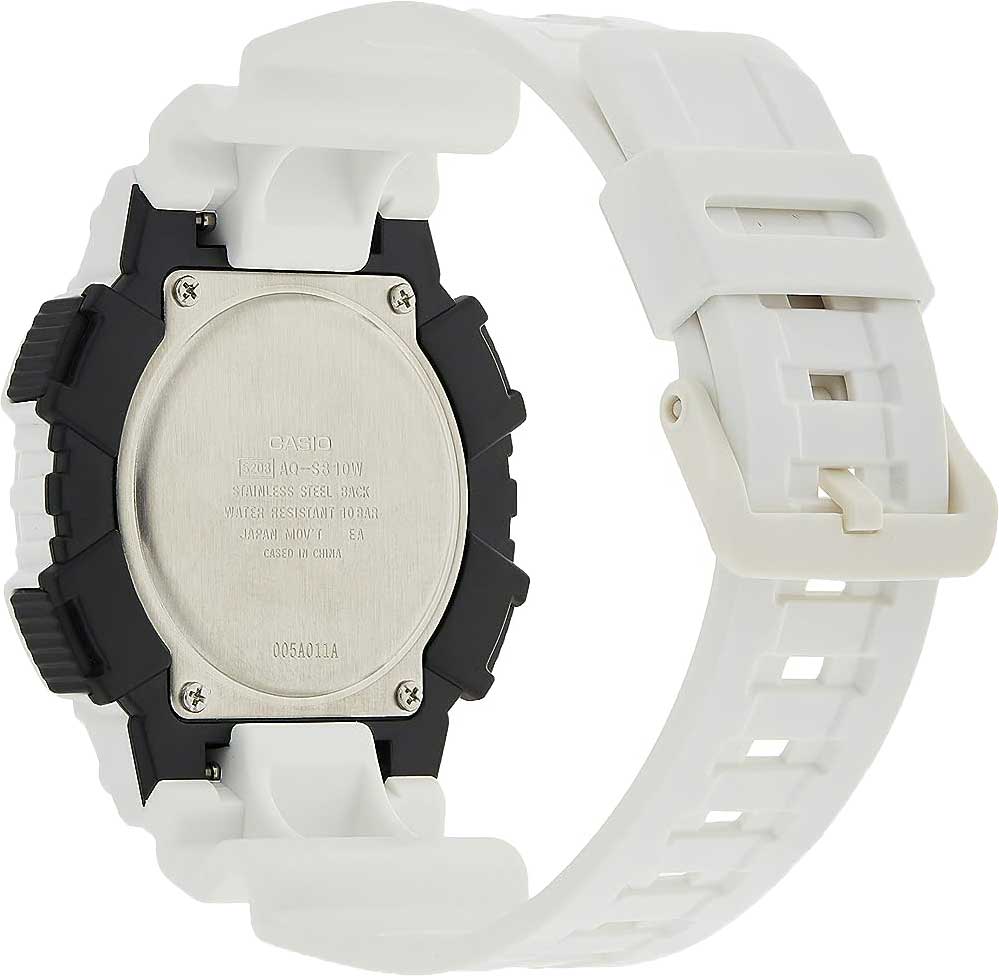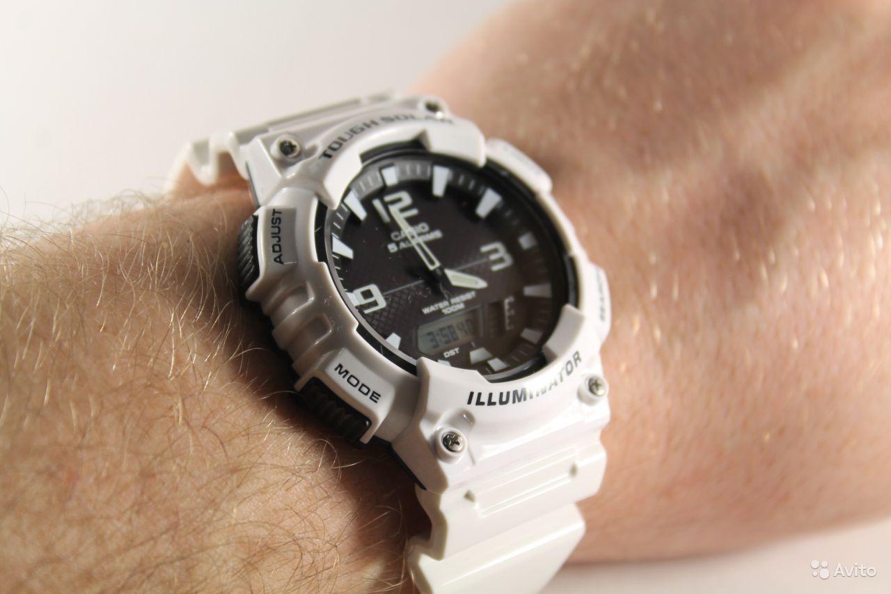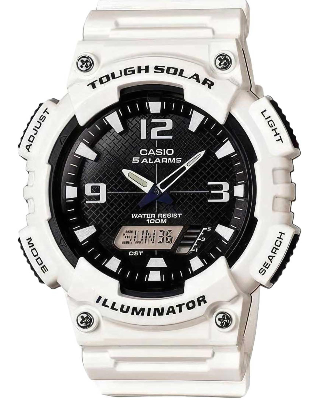Многофункциональные и сдержанные часы в спортивном стиле станут идеальным выбором для современных мужчин. Analog-Digital Combination AQ-S810WC-7A. LCD циферблат подсвечивается светодиодной подсветкойСветодиодная подсветкаСветодиодная или LED-подсветка обеспечивает появление яркого холодного свечения за счёт LED-элементов - маленьких лампочек. Они потребляют минимальное количество энергии, чаще всего можно встретить 1 светодиод, в нижней части циферблата.. Питание от солнечной энергии, индикатор заряда батареи. Функция автоматического сохранения энергии (отключает LCD дисплей). Время работы аккумулятора без подзарядки - 10 месяцев, при включенной функции сохранения энергии - 23 месяцев. CекундомерСекундомерСекундоме́р — прибор, способный измерять интервалы времени с точностью до долей секунды. с точностью показаний 1/100с и временем измерения 1ч. Два таймераТаймерОтсчитывает секунды в обратном направлении в заданном интервале времени. обратного отсчета времени от 5с до 100 мин с устанавливаемым количеством повторов от 1 до 10. Мировое времяМировое время Полезное часовое усложнение, отображающее время в основных городах и известных областях по всему миру, оно связано с часовыми поясами, удобно для путешественников и бизнесменов. . 12-ти и 24-х часовой формат времени. Шесть языков отображения дня недели: английский, португальский, испанский, французский, немецкий и итальянский. Функция включения/отключения звука. Класс водозащиты: 100 метров, позволит плавать, нырять и заниматься другими водными видами спорта. Пластиковый ремешок на стандартной застёжке.