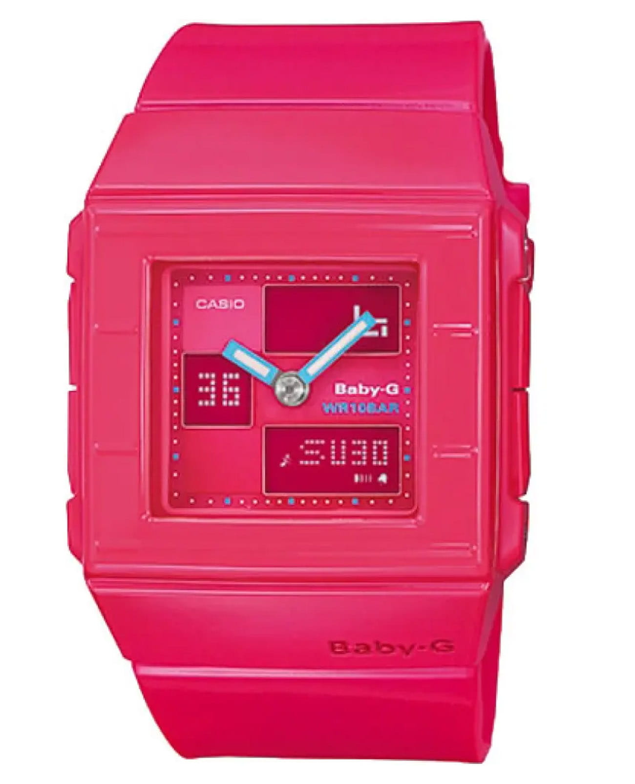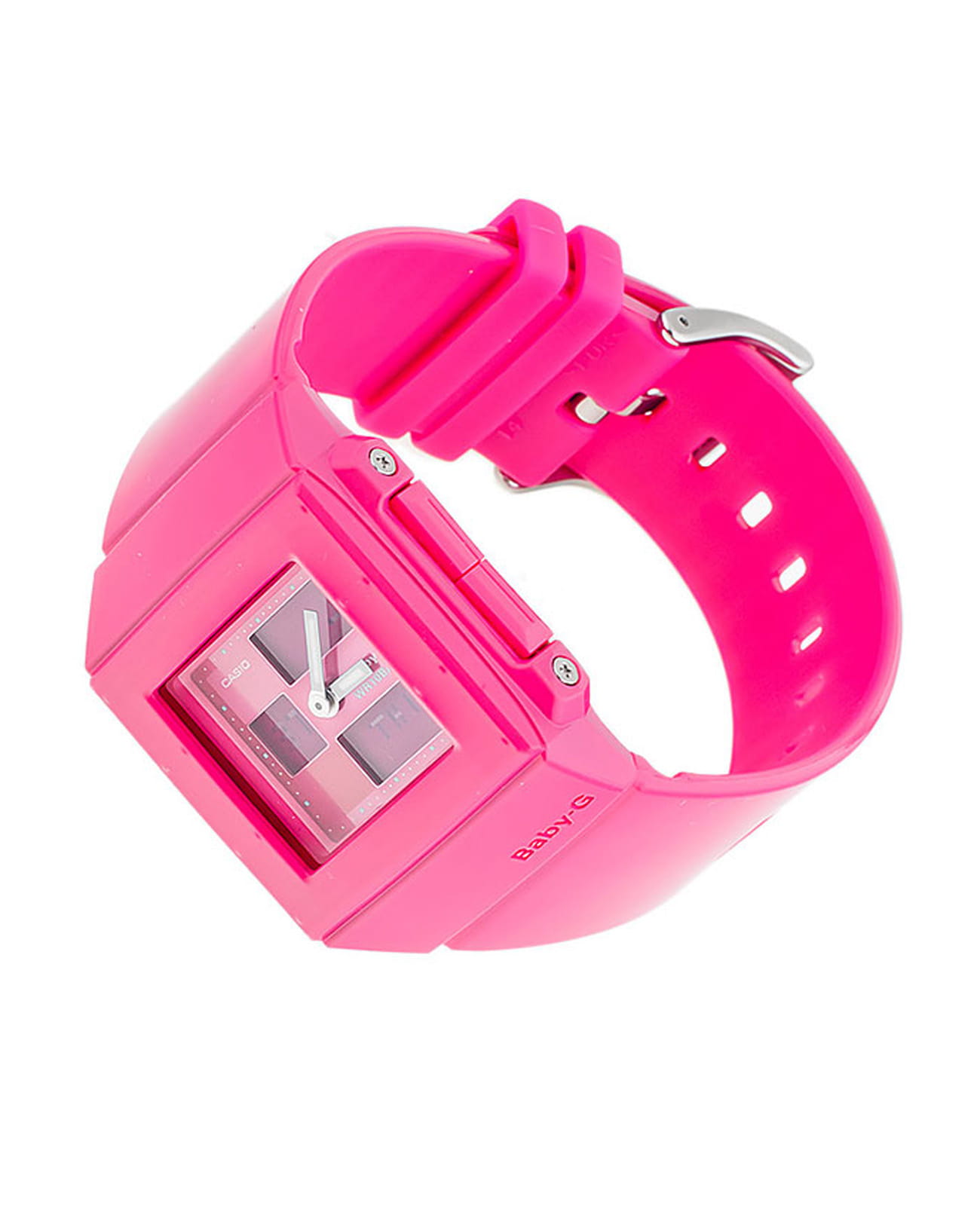 Японские женские часы-хронографХронографФункция позволяет измерять отрезки времени с особой точностью: часы, минуты, секунды. Верным признаком хронографа является наличие на циферблате 3 дополнительных окошек-счётчиков. Casio Baby-G BGA-200-4EDR из коллекции Baby-G. Минеральное стеклоМинеральное стеклоМинеральное стекло представляет собой искусственно выращенный минерал кварца. Такое стекло отличается особой устойчивостью к повреждениям и царапинам. Уступает по некоторым качествам сапфировому стеклу. устойчивое к появлению царапин, обладающее высокой прозрачностью. Корпус часов изготовлен из полимерного материала. Светодиодная подсветкаСветодиодная подсветкаСветодиодная или LED-подсветка обеспечивает появление яркого холодного свечения за счёт LED-элементов - маленьких лампочек. Они потребляют минимальное количество энергии, чаще всего можно встретить 1 светодиод, в нижней части циферблата. с функцией послесвечения. Ударопрочный корпусУдаропрочный корпусМеханизм заключён в корпус, выполненный из современных материалов, устойчивых к ударам, механическим повреждениям и падению с высоты: инновационный пластик, карбон, нержавеющая сталь, титан. защищает механизм от ударов и вибрации. Функция Мирового времениМировое время Полезное часовое усложнение, отображающее время в основных городах и известных областях по всему миру, оно связано с часовыми поясами, удобно для путешественников и бизнесменов. , автоматический переход на зимнее и летнее время, возможность включения/отключения данной функции. СекундомерСекундомерСекундоме́р — прибор, способный измерять интервалы времени с точностью до долей секунды. с точностью измерения 1/100 секунды и измерением до 23 часов 59 минут 59,99 cек. ТаймерТаймерОтсчитывает секунды в обратном направлении в заданном интервале времени. обратного отсчета (диапазон времени 24 часа), автоматический календарь, 12/24 отображение времени, будильникБудильникБуди́льник — часы, в заданный момент времени подающие звуковой, световой и/или в редких случаях другой сигнал.. Функция включения/отключения звука кнопок. Класс водозащиты: 100 метров, позволит плавать без погружения. Ремешок из полимерного материала на стандартной застежке.