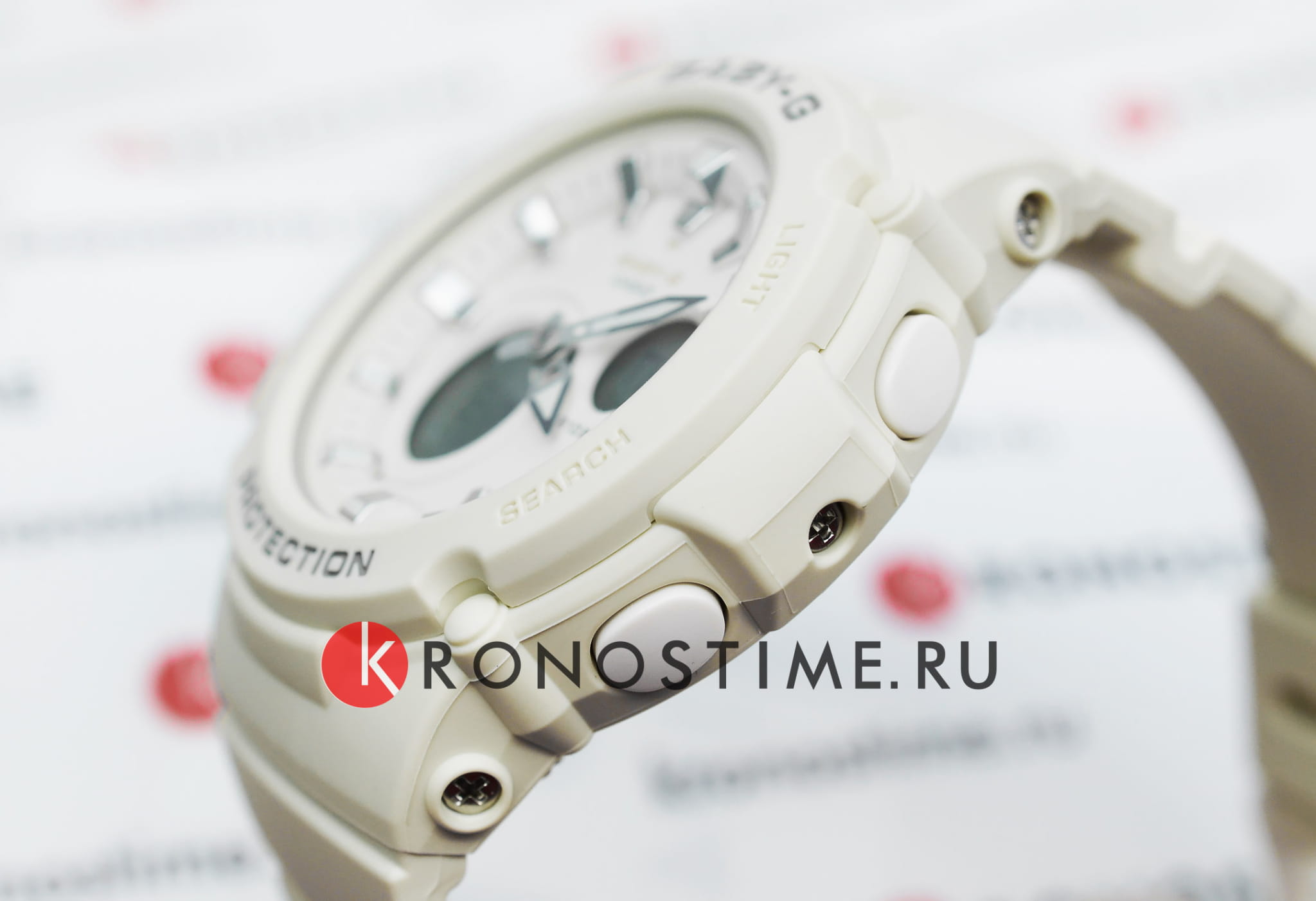 Женские японские наручные часы с противоударнымУдаропрочный корпусМеханизм заключён в корпус, выполненный из современных материалов, устойчивых к ударам, механическим повреждениям и падению с высоты: инновационный пластик, карбон, нержавеющая сталь, титан. корпусом Casio Baby-G BGA-275-7A. Функциональность данной модели: формат времени 12/24, мировое времяМировое время Полезное часовое усложнение, отображающее время в основных городах и известных областях по всему миру, оно связано с часовыми поясами, удобно для путешественников и бизнесменов. 48 городов (29 часовых поясов), вечный календарьВечный календарьКлассическое часовое усложнение, представляющее собой календарь, рассчитанный на несколько лет вперёд (стандартно – до 2099 года). Определяет текущую дату, день недели, месяц. до 2099 года, функция летнего времени, 5 независимых будильниковБудильникБуди́льник — часы, в заданный момент времени подающие звуковой, световой и/или в редких случаях другой сигнал., сигнал начала часа, секундомерСекундомерСекундоме́р — прибор, способный измерять интервалы времени с точностью до долей секунды. с точностью 1/100 секунды и измерением до 23 часов 59 минут 59,99 cек., таймер обратного отсчета (диапазон времени 24 часа), светодиодная подсветкаСветодиодная подсветкаСветодиодная или LED-подсветка обеспечивает появление яркого холодного свечения за счёт LED-элементов - маленьких лампочек. Они потребляют минимальное количество энергии, чаще всего можно встретить 1 светодиод, в нижней части циферблата. циферблата с функцией послесвечения, функция выключения звука нажатия кнопок. Стрелки покрыты необритовым (NeobriteПодсветка NeobriteИспользование светонакопительных составов на основе сульфида цинка или алюмината стронция, яркий свет можно наблюдать на протяжении 6-10 часов после «зарядки» часов около источника света.) люминесцентнымЛюминесцентное покрытиеПозволяет считывать показания времени в темноте. Производители наносят на стрелки, часовые индексы, безель или поверхность циферблата светонакопительный состав, дающий холодное свечение. напылением (светятся в темноте).