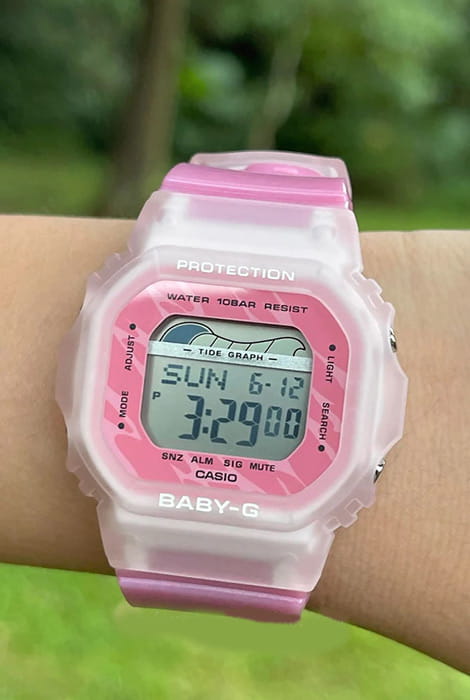 Женские японские часы-хронографХронографФункция позволяет измерять отрезки времени с особой точностью: часы, минуты, секунды. Верным признаком хронографа является наличие на циферблате 3 дополнительных окошек-счётчиков. Casio Baby-G BLX-565S-4E, кварцевый механизм с высокой точностью. Класс водозащиты: 100 метров, позволит плавать, нырять и заниматься другими водными видами спорта. Корпус часов изготовлен из пластика розового цвета. Ударопрочный корпусУдаропрочный корпусМеханизм заключён в корпус, выполненный из современных материалов, устойчивых к ударам, механическим повреждениям и падению с высоты: инновационный пластик, карбон, нержавеющая сталь, титан. защищает механизм от ударов и вибрации. Светодиодная подсветкаСветодиодная подсветкаСветодиодная или LED-подсветка обеспечивает появление яркого холодного свечения за счёт LED-элементов - маленьких лампочек. Они потребляют минимальное количество энергии, чаще всего можно встретить 1 светодиод, в нижней части циферблата. освещает весь циферблат, после отпускания кнопки свечение продолжается еще некоторое время. Особенность модели в функциях будильникаБудильникБуди́льник — часы, в заданный момент времени подающие звуковой, световой и/или в редких случаях другой сигнал., секундомераСекундомерСекундоме́р — прибор, способный измерять интервалы времени с точностью до долей секунды., таймераТаймерОтсчитывает секунды в обратном направлении в заданном интервале времени. и мирового времениМировое время Полезное часовое усложнение, отображающее время в основных городах и известных областях по всему миру, оно связано с часовыми поясами, удобно для путешественников и бизнесменов. . Циферблат подсвечивается ярким светодиодомСветодиодная подсветкаСветодиодная или LED-подсветка обеспечивает появление яркого холодного свечения за счёт LED-элементов - маленьких лампочек. Они потребляют минимальное количество энергии, чаще всего можно встретить 1 светодиод, в нижней части циферблата.. Послесвечение. Цвет подсветки: белый. Отображение возраста и фазы Луны. Отображение сведений о приливах и отливах на заданную дату и время. 12-ти и 24-х часовой формат времени. Функции включения/отключения летнего времени и включения/отключения звука. Батарея рассчитана на 3 года. Задняя крышка крепится на 4-х винтах.