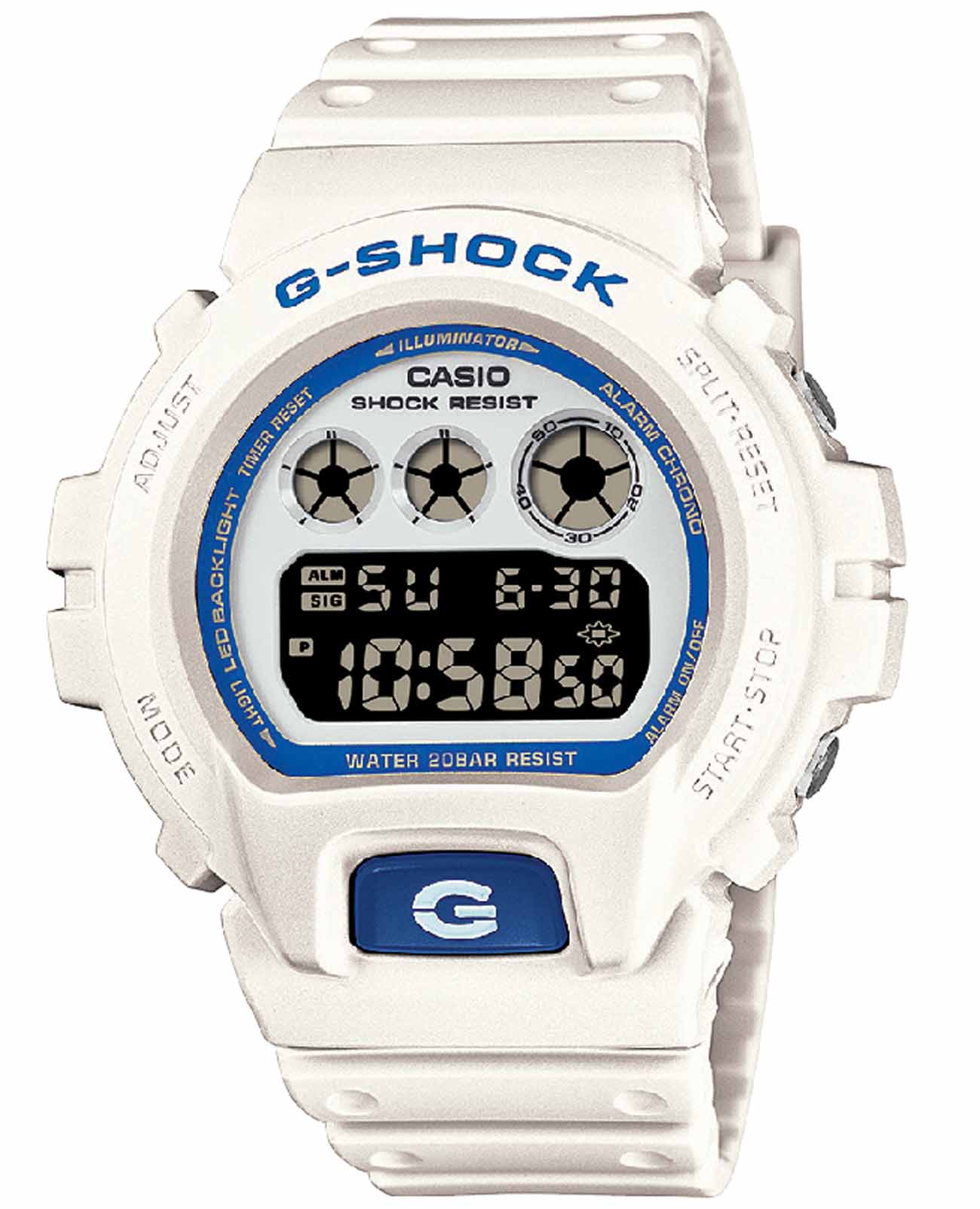 Японские мужские часы Casio G-Shock DW-6900HDS-7. Ударопрочный корпусУдаропрочный корпусМеханизм заключён в корпус, выполненный из современных материалов, устойчивых к ударам, механическим повреждениям и падению с высоты: инновационный пластик, карбон, нержавеющая сталь, титан. из полимерного материала защищает механизм от ударов и вибрации. Минеральное стеклоМинеральное стеклоМинеральное стекло представляет собой искусственно выращенный минерал кварца. Такое стекло отличается особой устойчивостью к повреждениям и царапинам. Уступает по некоторым качествам сапфировому стеклу. устойчивое к появлению царапин, обладающее высокой прозрачностью. Светодиодная подсветкаСветодиодная подсветкаСветодиодная или LED-подсветка обеспечивает появление яркого холодного свечения за счёт LED-элементов - маленьких лампочек. Они потребляют минимальное количество энергии, чаще всего можно встретить 1 светодиод, в нижней части циферблата., послесвечение. 12/24-часовой формат. вечный календарьВечный календарьКлассическое часовое усложнение, представляющее собой календарь, рассчитанный на несколько лет вперёд (стандартно – до 2099 года). Определяет текущую дату, день недели, месяц.. СекундомерСекундомерСекундоме́р — прибор, способный измерять интервалы времени с точностью до долей секунды.. ТаймерТаймерОтсчитывает секунды в обратном направлении в заданном интервале времени.. Часовой сигнал времени. Многофункциональный будильник. Класс водозащиты: 200 метров, позволит плавать, нырять и заниматься другими водными видами спорта. Ремешок из полимерного материала на стандартной застежке.