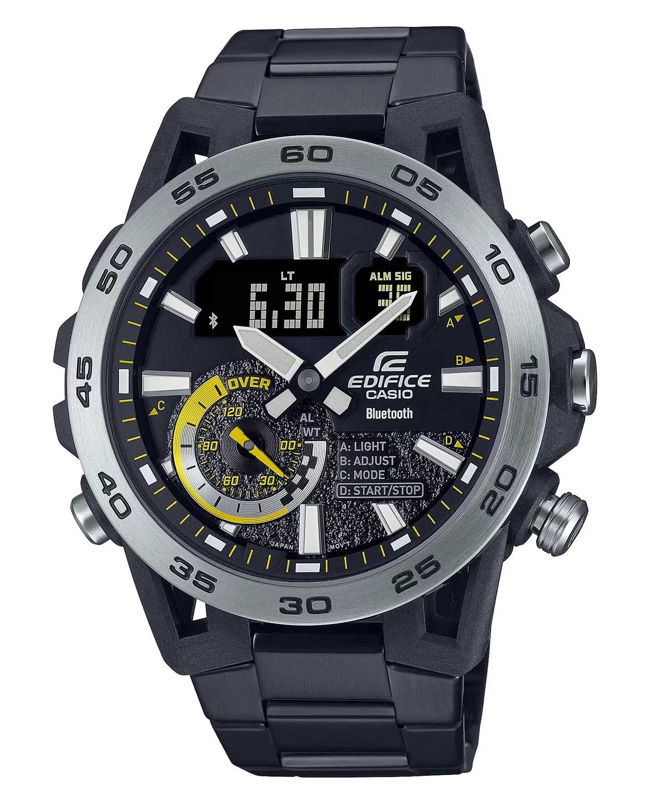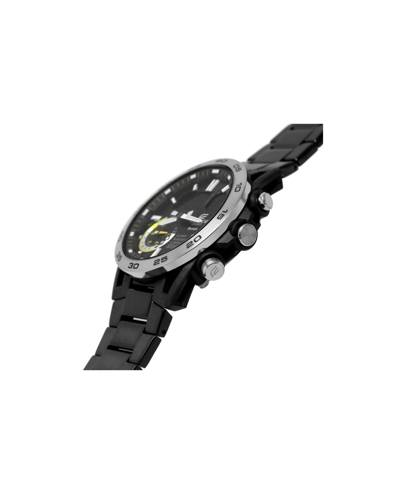 . СекундомерСекундомерСекундоме́р — прибор, способный измерять интервалы времени с точностью до долей секунды. с точностью измерения 1/100 секунды и измерением до 23 часов 59 минут 59,99 cек. ТаймерТаймерОтсчитывает секунды в обратном направлении в заданном интервале времени. обратного отсчета (диапазон времени 24 часа), автоматический календарь, 12/24 отображение времени, будильникБудильникБуди́льник — часы, в заданный момент времени подающие звуковой, световой и/или в редких случаях другой сигнал.. Автоматический переход на зимнее и летнее время, возможность включения/отключения данной функции. Переключение между домашним и мировым временем. Беспроводная технология BluetoothBluetoothСовременная технология, позволяющая синхронизировать часы с телефоном и переносить данные. Часы с Bluetooth расширяют возможности вашего смартфона и делают его использование ещё более удобным. со сверхнизким потреблением энергии для синхронизации со смартфоном. При подключении к смартфону часы корректируют текущее время, настраивают будильник, а также копируют настройки мирового времени (до 300 городов). Приложение EDIFICE Connected позволяет вести журнал показаний секундомера и прохождения этапов, вычислять разность между заданным временем и временем этапа. Отображение дней недели на шести языках. Смена отображения даты/месяца. Функции перемещения стрелок, поиска телефона и включения/отключения звука. Включение/выключение звукового сигнала по расписанию. Батарейка рассчитана на 2 года. Стальная задняя крышка крепится на 4-х винтах. Класс водозащиты: 100 метров, позволит плавать, нырять и заниматься другими водными видами спорта. Заводная головка с защитой. Батарея рассчитана на 2 года. Стальной браслет на раскладной застёжкеРаскладная застёжкаТакой тип застёжки используется только на браслетах из металла. Она никогда не раскрывается полностью, происходит разделение на 2 и более частей. Раскладывающая застёжка снизит вероятность потери часов к минимуму..