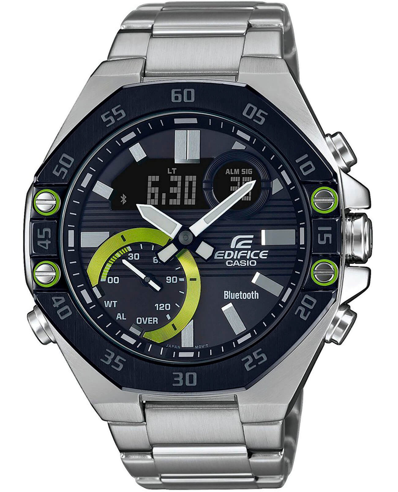 Casio Edifice ECB-10DB-1A – мужские часы, сочетающие спортивный дизайн и современные технологии. Корпус размером 51×48,5 мм и толщиной 12,5 мм выполнен из нержавеющей стали, обеспечивая прочность и устойчивость к коррозии. Чёрный циферблат с аналогово-цифровым отображением времени защищён минеральным стекломМинеральное стеклоМинеральное стекло представляет собой искусственно выращенный минерал кварца. Такое стекло отличается особой устойчивостью к повреждениям и царапинам. Уступает по некоторым качествам сапфировому стеклу., устойчивым к царапинам.