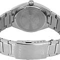 Завершает образ литой стальной браслет с тройной раскладывающейся застежкой , которую можно расстегнуть одним касанием. Такая конструкция обеспечивает комфорт и уверенную фиксацию на запястье. Задняя крышка с винтовым фиксатором добавляет модели дополнительной защиты механизма. Батарейка рассчитана на 3 года автономной работы.