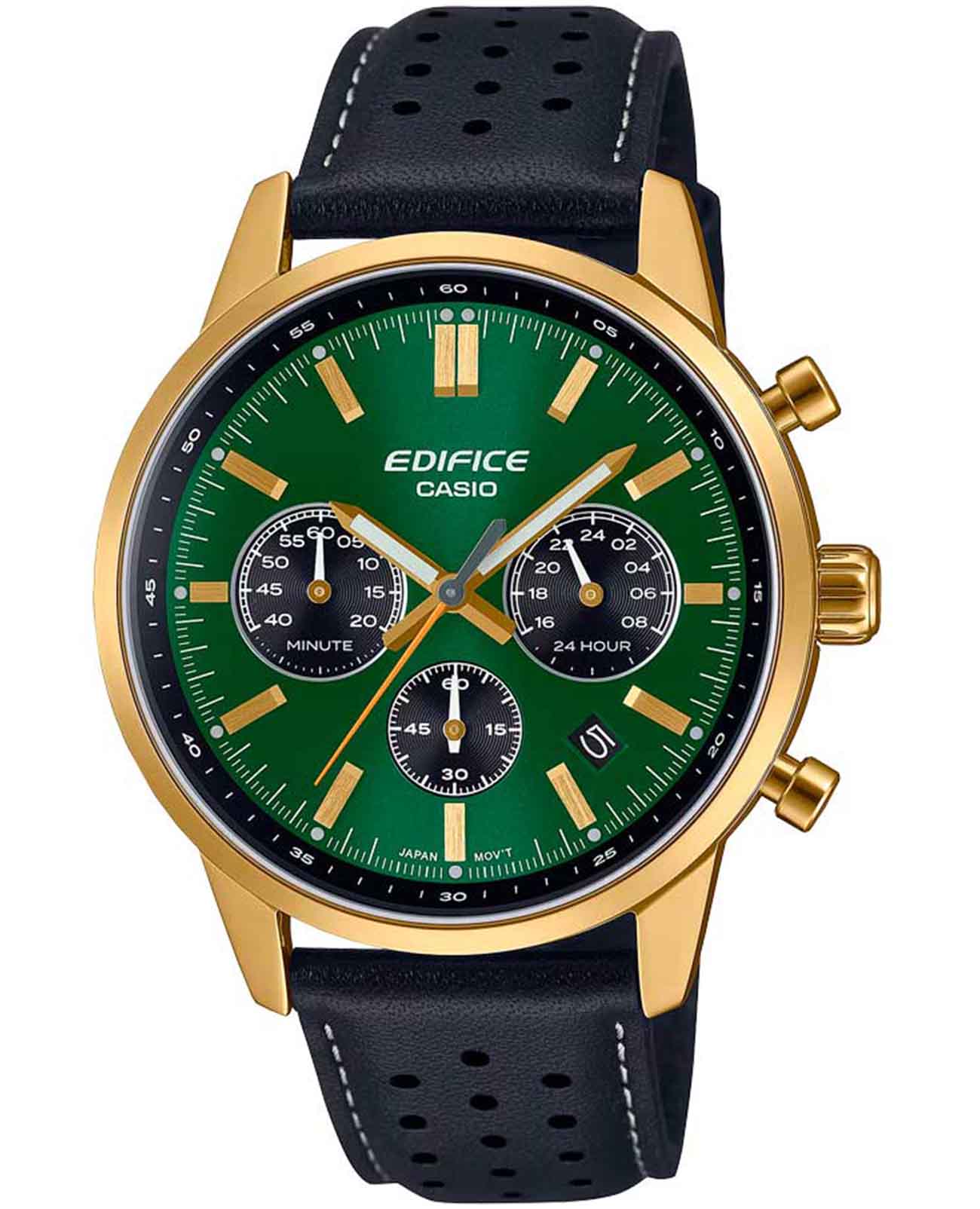 Японские мужские часы Casio Edifice EFR-575CL-3A — это стильный хронограф с ретро-вдохновением, созданный для ценителей спортивного наследия и современного качества. Модель выполнена в круглом корпусе золотистого оттенка, напоминающем приборные панели классических спорткаров 60–70-х годов.