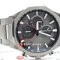Ярко-красные цветовые акценты счётчиков гармонируют с тёмным фоном. Часы выполнены в спортивном стиле, ссылаясь на дизайн эксклюзивных спорткаров и автомобильных деталей. Они основаны на технологии , оснащены расширенными функциональными возможностями: BluetoothBluetoothСовременная технология, позволяющая синхронизировать часы с телефоном и переносить данные. Часы с Bluetooth расширяют возможности вашего смартфона и делают его использование ещё более удобным. нового поколения с низким потреблением энергии, автоматический календарь, хронографХронографФункция позволяет измерять отрезки времени с особой точностью: часы, минуты, секунды. Верным признаком хронографа является наличие на циферблате 3 дополнительных окошек-счётчиков., секундомер, индикатор последнего круга дистанции Last Lap Indicator, мировое время. Модель комплектуется надёжным браслетом из нержавеющей стали. Заводная головка с защитой. Ударопрочный корпусУдаропрочный корпусМеханизм заключён в корпус, выполненный из современных материалов, устойчивых к ударам, механическим повреждениям и падению с высоты: инновационный пластик, карбон, нержавеющая сталь, титан.. Сапфировое стекло с антибликовым покрытием. Водонепроницаемость WR 100. Подсветка NeobriteПодсветка NeobriteИспользование светонакопительных составов на основе сульфида цинка или алюмината стронция, яркий свет можно наблюдать на протяжении 6-10 часов после «зарядки» часов около источника света.. Габариты: 44,6 x 51,1 x 8,9 мм.
