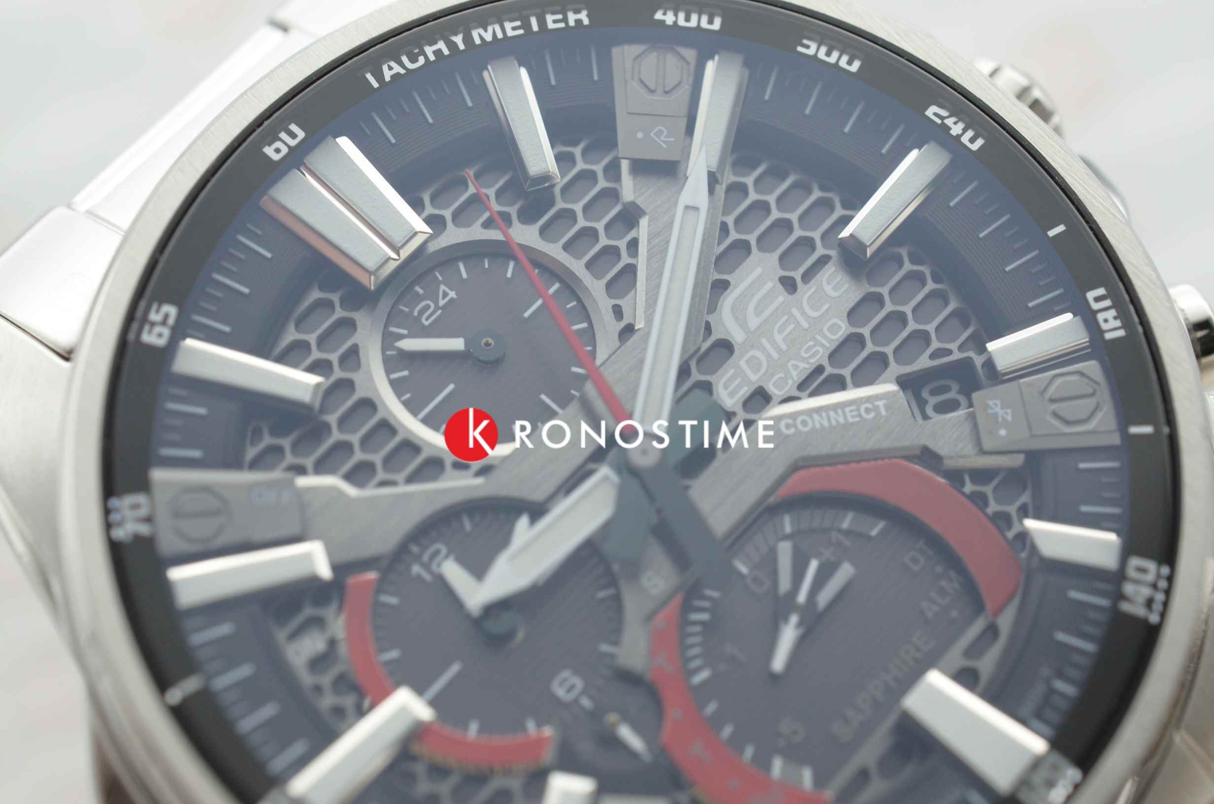 Карбоновый безель гармонируют с серым фоном. Часы выполнены в спортивном стиле, ссылаясь на дизайн эксклюзивных спорткаров и автомобильных деталей. Они основаны на технологии , оснащены расширенными функциональными возможностями: BluetoothBluetoothСовременная технология, позволяющая синхронизировать часы с телефоном и переносить данные. Часы с Bluetooth расширяют возможности вашего смартфона и делают его использование ещё более удобным. нового поколения с низким потреблением энергии, автоматический календарь, хронографХронографФункция позволяет измерять отрезки времени с особой точностью: часы, минуты, секунды. Верным признаком хронографа является наличие на циферблате 3 дополнительных окошек-счётчиков., секундомер, индикатор последнего круга дистанции Last Lap Indicator, мировое время. Модель комплектуется надёжным браслетом из нержавеющей стали. Заводная головка с защитой. Ударопрочный корпусУдаропрочный корпусМеханизм заключён в корпус, выполненный из современных материалов, устойчивых к ударам, механическим повреждениям и падению с высоты: инновационный пластик, карбон, нержавеющая сталь, титан.. Сапфировое стекло с антибликовым покрытием. Водонепроницаемость WR 100. Подсветка NeobriteПодсветка NeobriteИспользование светонакопительных составов на основе сульфида цинка или алюмината стронция, яркий свет можно наблюдать на протяжении 6-10 часов после «зарядки» часов около источника света.. Габариты: 50 x 45,2 x 9,6 мм.