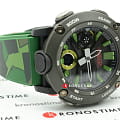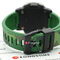 Камуфляжный дизайн отсылает к дебютному студийному альбому Gorillaz, присутствуют крупные элементы, яркие оттенки. В комплектацию входит сменный ремешок в стиле милитари в тёмном исполнении, кастомизированная коробка украшена изображением участников группы. Наручные часы имеют противоударный корпусУдаропрочный корпусМеханизм заключён в корпус, выполненный из современных материалов, устойчивых к ударам, механическим повреждениям и падению с высоты: инновационный пластик, карбон, нержавеющая сталь, титан. из полиуретана с углеродными вставками, что повышает его устойчивость к повреждениям, ударам, вибрациям. Кварцевый высокоточный механизм. Водонепроницаемость 20 бар. Двойная подсветка. Закалённое минеральное стекло. Функционал: мировое времяМировое время Полезное часовое усложнение, отображающее время в основных городах и известных областях по всему миру, оно связано с часовыми поясами, удобно для путешественников и бизнесменов. , секундомер, будильник, таймер, хронографХронографФункция позволяет измерять отрезки времени с особой точностью: часы, минуты, секунды. Верным признаком хронографа является наличие на циферблате 3 дополнительных окошек-счётчиков., второй часовой пояс. Габариты: 48,7 x 51,2 x 14,1 мм.