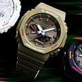 Японские мужские часы-хронографХронографФункция позволяет измерять отрезки времени с особой точностью: часы, минуты, секунды. Верным признаком хронографа является наличие на циферблате 3 дополнительных окошек-счётчиков. Casio G-Shock GA-B2100FC-3A. Супер стильная обновленная расцветка в одном из самых популярных корпусов G-Shock последних лет. Харизматичная модель в матовом оливковом корпусе с контрастными стрелками и яркими деталями циферблата из серии GA-B2100 сохранила внешний облик своих предшественников по серии GA-2100, но получила более технологичный модуль с блютус синхронизацией со смартфоном и Tough SolarTough SolarТехнология основана на подзарядке аккумулятора от источника солнечного света, специальная панель улавливает солнечные лучи и преобразует их в энергию для работы часов. Достаточно пары минут нахождения на солнце для функционирования часов в течении суток.. Минеральное стеклоМинеральное стеклоМинеральное стекло представляет собой искусственно выращенный минерал кварца. Такое стекло отличается особой устойчивостью к повреждениям и царапинам. Уступает по некоторым качествам сапфировому стеклу. устойчивое к появлению царапин, обладающее высокой прозрачностью. Ударопрочный корпусУдаропрочный корпусМеханизм заключён в корпус, выполненный из современных материалов, устойчивых к ударам, механическим повреждениям и падению с высоты: инновационный пластик, карбон, нержавеющая сталь, титан. Carbon Core GuardCarbon Core Guard Новейшая структура корпуса, разработанная Casio. Полиуретановая пластина дополнительно усилена карбоновыми вставками, что придаёт специальную защиту от механических повреждений. Карбон отличается лёгкостью и прочностью.. Светодиодная подсветкаСветодиодная подсветкаСветодиодная или LED-подсветка обеспечивает появление яркого холодного свечения за счёт LED-элементов - маленьких лампочек. Они потребляют минимальное количество энергии, чаще всего можно встретить 1 светодиод, в нижней части циферблата. освещает весь циферблат, после отпускания кнопки свечение продолжается еще некоторое время. Настраиваемое послесвечение 1,5 или 3сек. Мировое время Мировое время Полезное часовое усложнение, отображающее время в основных городах и известных областях по всему миру, оно связано с часовыми поясами, удобно для путешественников и бизнесменов. 38 городов (38 часовых поясов), всемирное координированное время UTCUTCВсемирное кординационное время, не имеющее привязки к географическому положению Гринвича, основывается на атомном отсчёте времени. Регулировка времени осуществляется более точно, чем устаревшее GMT.