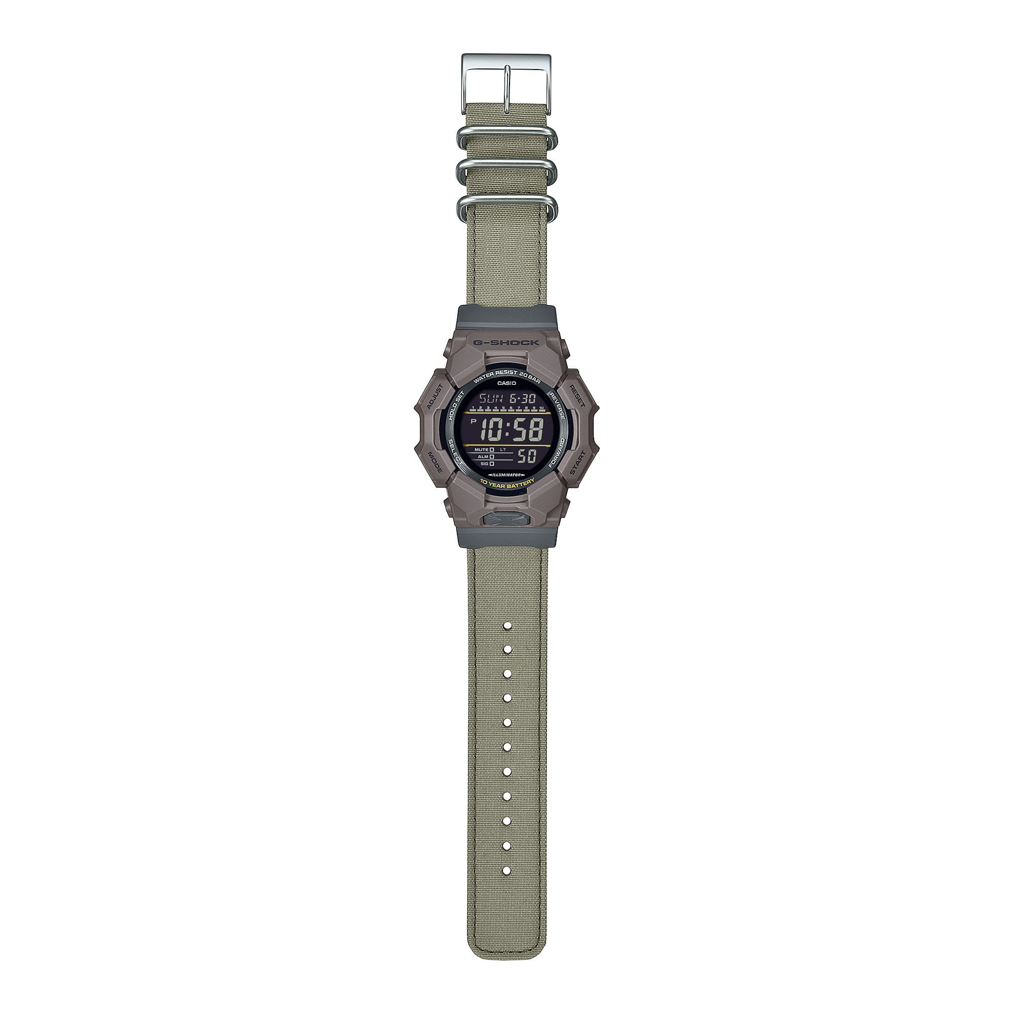 Мужские кварцевые часы Casio GD-010CE-5D — это прочный аксессуар из коллекции G-Shock, выполненный с применением передовых материалов. Модель имеет корпус, усиленный углеродным волокном по технологии Carbon Core GuardCarbon Core Guard Новейшая структура корпуса, разработанная Casio. Полиуретановая пластина дополнительно усилена карбоновыми вставками, что придаёт специальную защиту от механических повреждений. Карбон отличается лёгкостью и прочностью., что делает его устойчивым к повреждениям. Циферблат чёрного цвета дополнен цифровым электронным дисплеем, а его поверхность защищена минеральным стекломМинеральное стеклоМинеральное стекло представляет собой искусственно выращенный минерал кварца. Такое стекло отличается особой устойчивостью к повреждениям и царапинам. Уступает по некоторым качествам сапфировому стеклу., устойчивым к повреждениям. Текстильный ремешок изготовлен из высокопрочного волокна CORDURA® re/cor™ и переработанного ПЭТ-пластика, окрашен пищевыми красителями на основе экстрактов красной репы, что придаёт ему натуральные оттенки. Функциональность модели включает таймер обратного отсчёта (до 24 часов), хронограф, секундомер с точностью 1/100 секунды, будильник, мировое время (48 городов, 31 часовой пояс), функцию мультитайма (4 города), вечный календарь до 2099 года, функцию летнего времени (DST), сигнал начала часа, а также функцию выключения звука нажатия кнопок (Mute). Подсветка выполнена по технологии светодиодной подсветкиСветодиодная подсветкаСветодиодная или LED-подсветка обеспечивает появление яркого холодного свечения за счёт LED-элементов - маленьких лампочек. Они потребляют минимальное количество энергии, чаще всего можно встретить 1 светодиод, в нижней части циферблата. Super Illuminator, которая автоматически включается при наклоне часов на 40°. Цвет подсветки — белый, а её продолжительность можно настроить на 1,5 или 3 секунды. Батарейка рассчитана на 10 лет работы. Часы водонепроницаемы до 200 метров (, что позволяет использовать их при плавании и других водных активностях без глубокого погружения. Эти часы станут универсальным аксессуаром для тех, кто ценит сочетание стиля, функциональности и надёжности — идеальный выбор для повседневной носки и активного образа жизни.