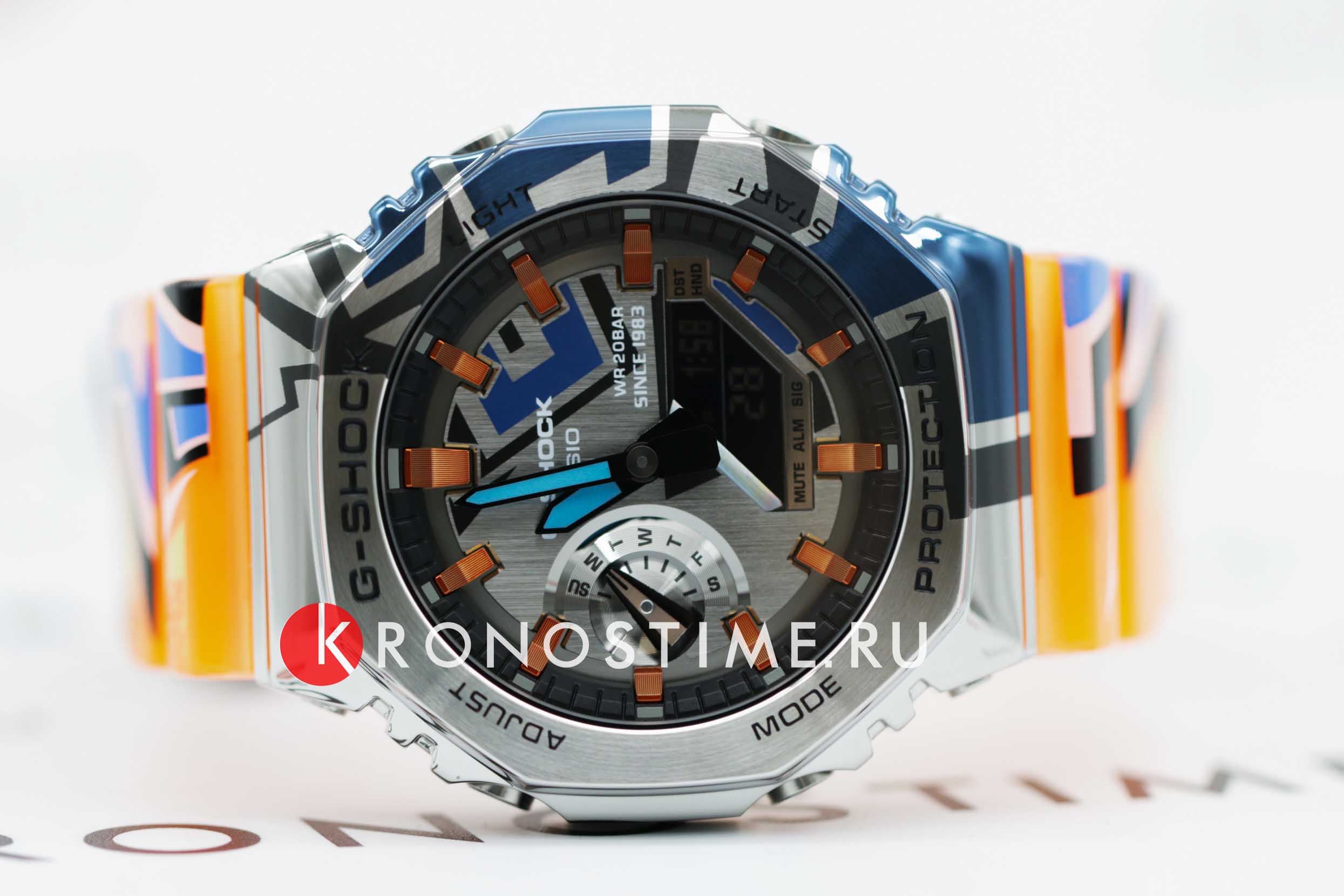 Ударопрочные часы с функциональной начинкой прекрасно подойдут для любителей активного образа жизни. Японские лимитированные мужские часы c хронографомХронографФункция позволяет измерять отрезки времени с особой точностью: часы, минуты, секунды. Верным признаком хронографа является наличие на циферблате 3 дополнительных окошек-счётчиков. Casio G-Shock GM-2100SS-1A, кварцевый механизм с высокой точностью. Класс водозащиты: 200 метров, позволит плавать, нырять и заниматься другими водными видами спорта. Ударопрочный корпусУдаропрочный корпусМеханизм заключён в корпус, выполненный из современных материалов, устойчивых к ударам, механическим повреждениям и падению с высоты: инновационный пластик, карбон, нержавеющая сталь, титан. часов изготовлен из стали. Дизайн этих ярких часов вдохновлен уличным искусством граффити. Ударопрочный корпусУдаропрочный корпусМеханизм заключён в корпус, выполненный из современных материалов, устойчивых к ударам, механическим повреждениям и падению с высоты: инновационный пластик, карбон, нержавеющая сталь, титан. защищает механизм от ударов и вибрации. Функция парный иллюминатор обеспечивает подсветку не только аналогового циферблата, но и цифрового дисплея. Настраиваемое послесвечение 1,5 или 3сек. Цвет подсветки: белый. Подсветка NeobriteПодсветка NeobriteИспользование светонакопительных составов на основе сульфида цинка или алюмината стронция, яркий свет можно наблюдать на протяжении 6-10 часов после «зарядки» часов около источника света. обеспечивает длительное послесвечение в темноте даже после кратковременного нахождения на свету. 12-ти и 24-х часовой формат времени. СекундомерСекундомерСекундоме́р — прибор, способный измерять интервалы времени с точностью до долей секунды. с двумя точностями показаний: 1/100с (до 1ч) и 1с (после 1ч) и временем измерения 24ч. Сплит-хронографСплит-хронографИспользуется для измерения продолжительности нескольких временных отрезков, начинающихся одновременно, а заканчивающихся в разное время.. ТаймерТаймерОтсчитывает секунды в обратном направлении в заданном интервале времени. обратного отсчета от 1с до 24ч. Мировое времяМировое время Полезное часовое усложнение, отображающее время в основных городах и известных областях по всему миру, оно связано с часовыми поясами, удобно для путешественников и бизнесменов. – 48 городов (31 часовой пояс), всемирное координированное время (UTCUTCВсемирное кординационное время, не имеющее привязки к географическому положению Гринвича, основывается на атомном отсчёте времени. Регулировка времени осуществляется более точно, чем устаревшее GMT.