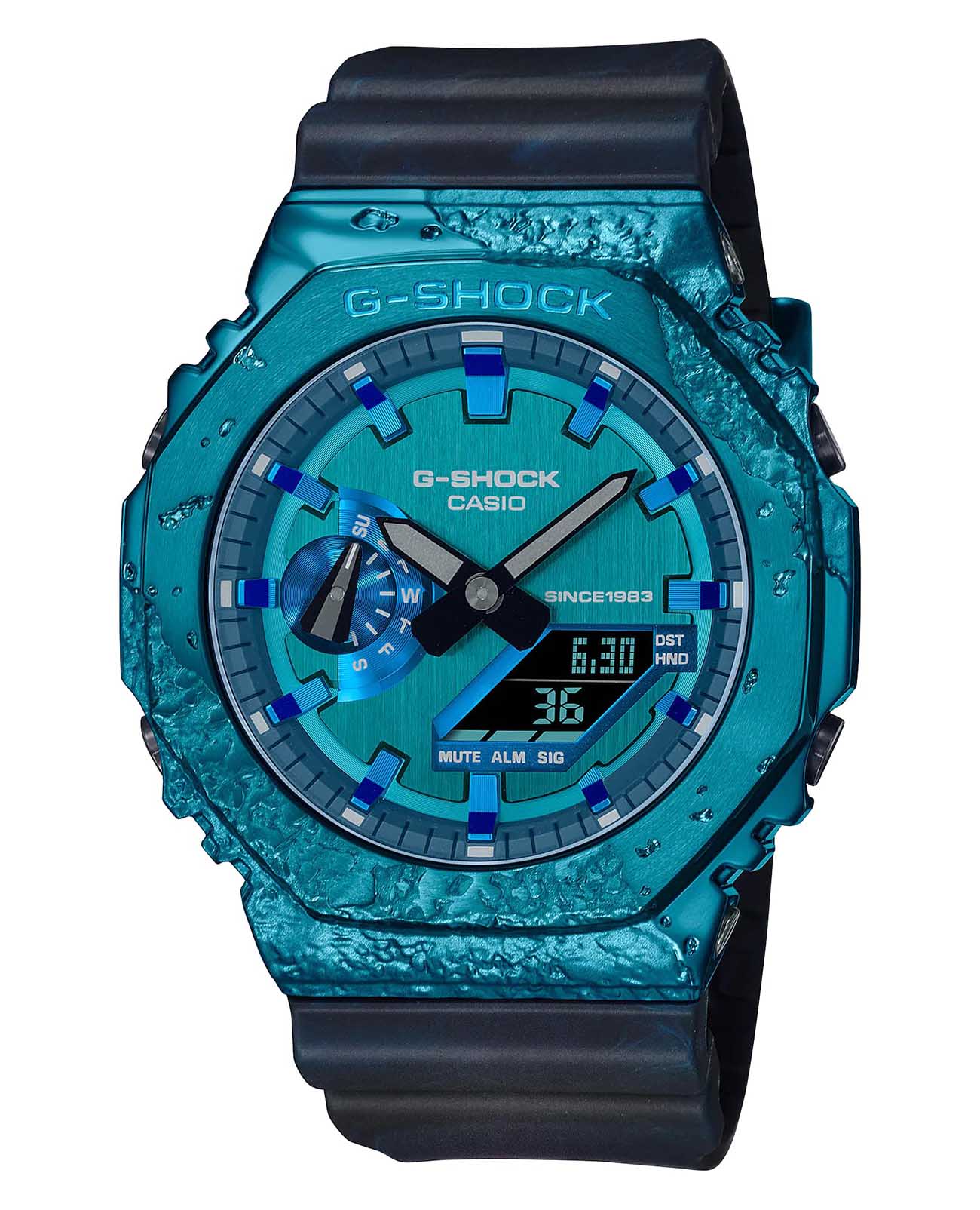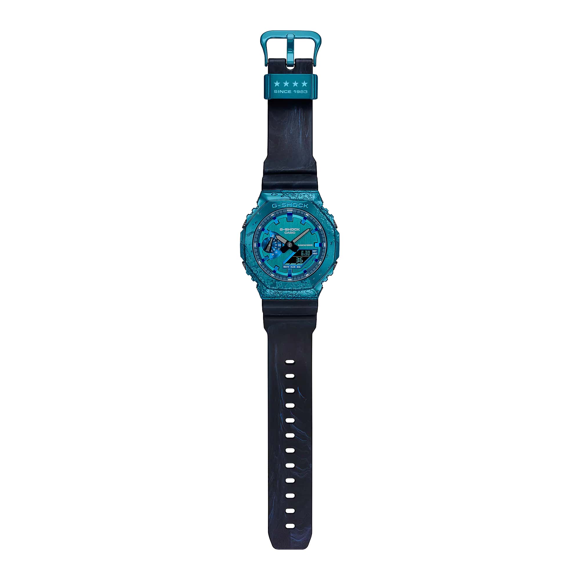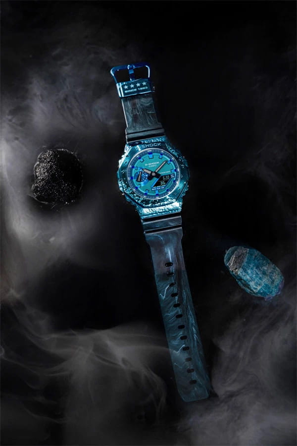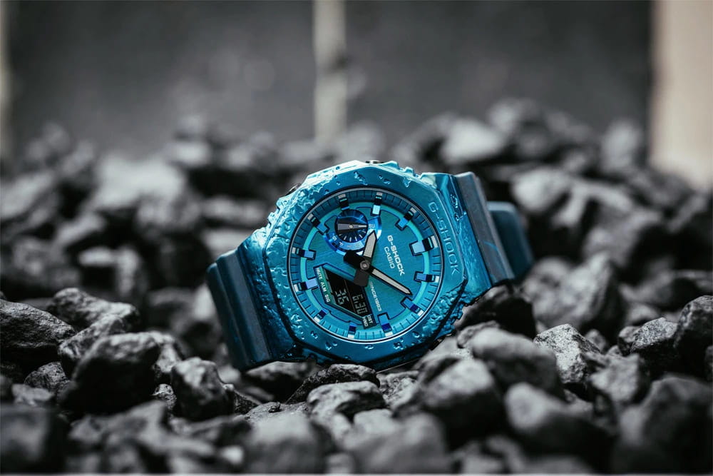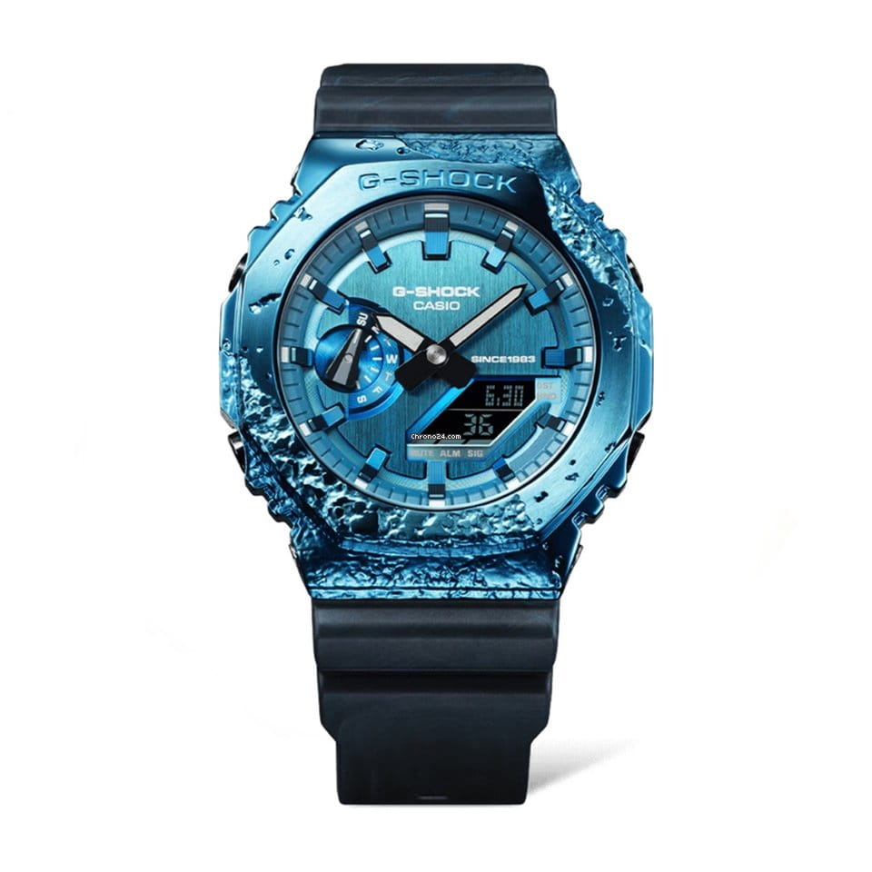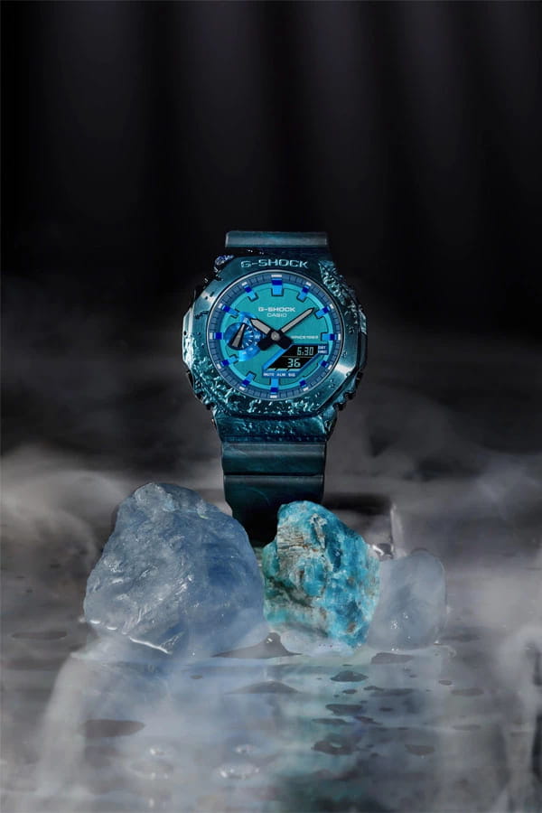 Японские лимитированные мужские часы с секундомеромСекундомерСекундоме́р — прибор, способный измерять интервалы времени с точностью до долей секунды. Casio G-Shock GM-2140GEM-2A, кварцевый механизм с высокой точностью. Класс водозащиты: 200 метров, позволит плавать, нырять и заниматься другими водными видами спорта. Корпус часов изготовлен из стали с PVD-покрытиемPVDУльтратонкое покрытие наносится в технике вакуумного напыления, сочетает в себе нитрид титана особой прочности со слоем золота или оксида хрома. Несёт в себе декоративную или защитную функцию.. УдаропрочныеУдаропрочный корпусМеханизм заключён в корпус, выполненный из современных материалов, устойчивых к ударам, механическим повреждениям и падению с высоты: инновационный пластик, карбон, нержавеющая сталь, титан. модели 40th anniversary Adventurer's Stone вдохновлены камнями, известными искателям приключений как полезные компасы со времен средневековья. Концепция непрерывных инноваций бренда G-SHOCK вдохновляет людей на решение новых задач, и дизайн этой линии основан на ценности, которую эти камни всегда имели для людей, ищущих приключений. Восьмиугольный безельБезельВнешний ободок, закрепляющий стекло. В спортивных часах так называется поворотное кольцо с делениями на циферблате, выполняет роль таймера – замеряет отрезки времени на шкале. Неподвижный безель – элемент декора. Однонаправленно вращающийся безель на дайверских часах позволяет фиксировать моменты погружения и выныривания на поверхность. и простой дизайн популярного GM-2100 выполнены в стиле кордиерита, камня, который ассоциируется с “указывающим путь”. Красивый синий цвет кордиерита воспроизводится с помощью металлического безеляБезельВнешний ободок, закрепляющий стекло. В спортивных часах так называется поворотное кольцо с делениями на циферблате, выполняет роль таймера – замеряет отрезки времени на шкале. Неподвижный безель – элемент декора. Однонаправленно вращающийся безель на дайверских часах позволяет фиксировать моменты погружения и выныривания на поверхность. с синим ионным покрытием и ремешка, выполненных в технике формования Garal, в которой смешиваются смолы двух разных цветов. Силиконовый ремешок на стандартной застёжке. Отображает мировое времяМировое время Полезное часовое усложнение, отображающее время в основных городах и известных областях по всему миру, оно связано с часовыми поясами, удобно для путешественников и бизнесменов. в крупных городах и конкретных районах по всему миру. Минеральное стеклоМинеральное стеклоМинеральное стекло представляет собой искусственно выращенный минерал кварца. Такое стекло отличается особой устойчивостью к повреждениям и царапинам. Уступает по некоторым качествам сапфировому стеклу. - закаленное и способное противостоять большинству царапин. Двойная подсветка: раздельная подсветка аналогового и цифрового компонентов обеспечивает оптимальную читаемость в условиях низкой освещенности. Светодиодная подсветкаСветодиодная подсветкаСветодиодная или LED-подсветка обеспечивает появление яркого холодного свечения за счёт LED-элементов - маленьких лампочек. Они потребляют минимальное количество энергии, чаще всего можно встретить 1 светодиод, в нижней части циферблата., выбираемая продолжительность подсветки (1,5 секунды или 3 секунды), с послесвечением.