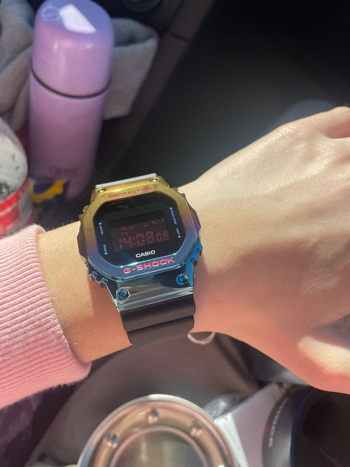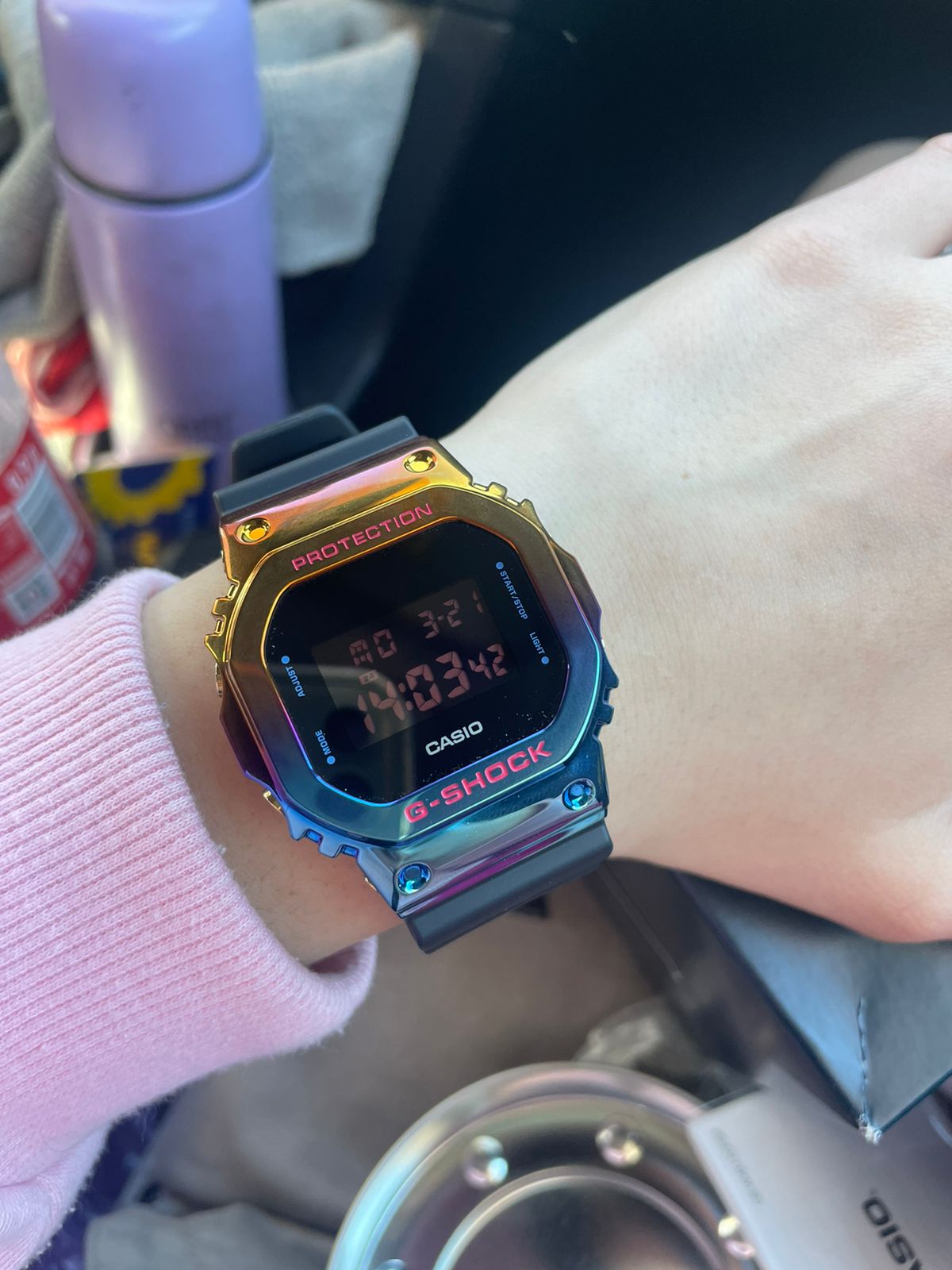 Цельно-металлический и стильный корпус из цветной стали в градиентной расцветке!! При этом часы лёгкие. Электролюминесцентная подсветка дисплея